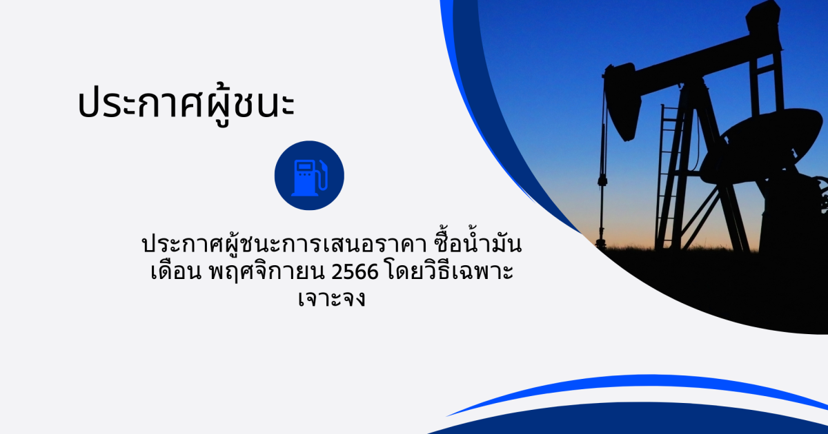 ประกาศผู้ชนะการเสนอราคา ซื้อน้ำมันเดือน พฤศจิกายน ๒๕๖๖ โดยวิธีเฉพาะเจาะจง