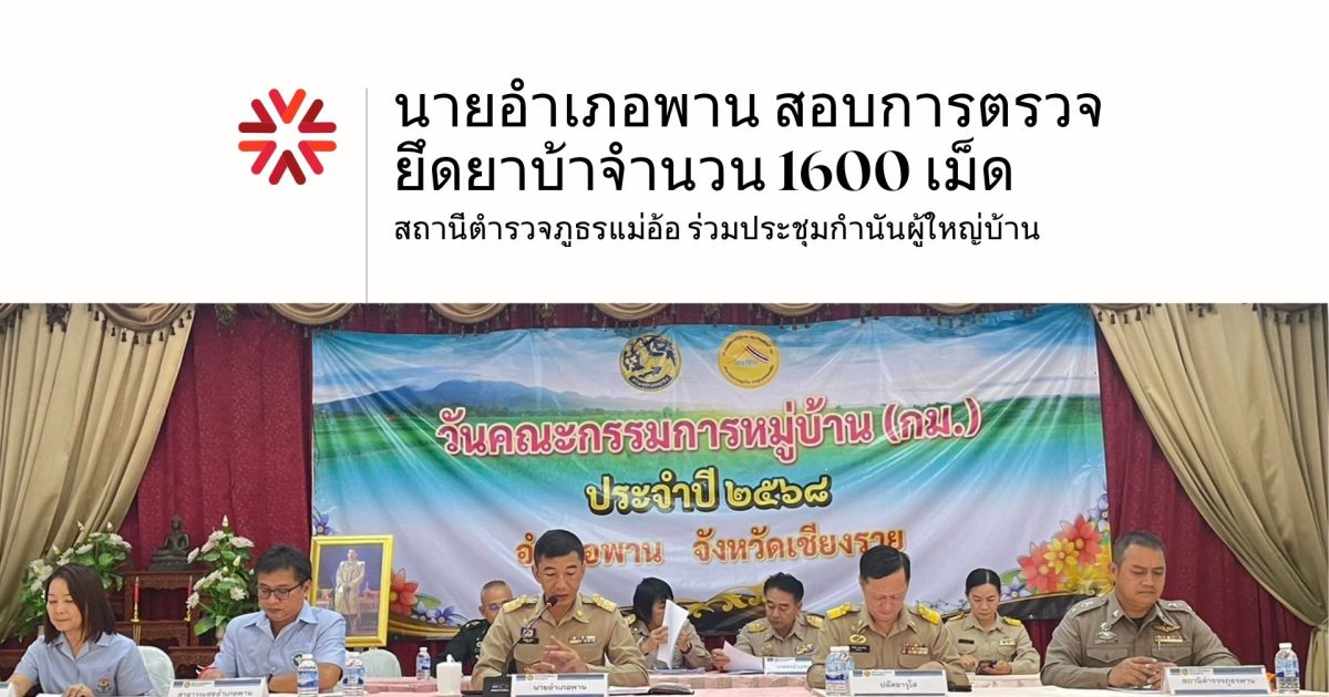 ร่วมประชุมกำนันผู้ใหญ่บ้าน อำเภอพาน นายอำเภอพาน สอบการตรวจยึดยาบ้าจำนวน 1600 เม็ด