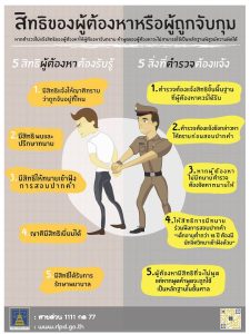 (5) สิทธิได้รับการแจ้งจากเจ้าพนักงานผู้จับว่าผู้ถูกจับหรือผู้ต้องหามีสิทธิ ตามข้อ 1 ถึง 4