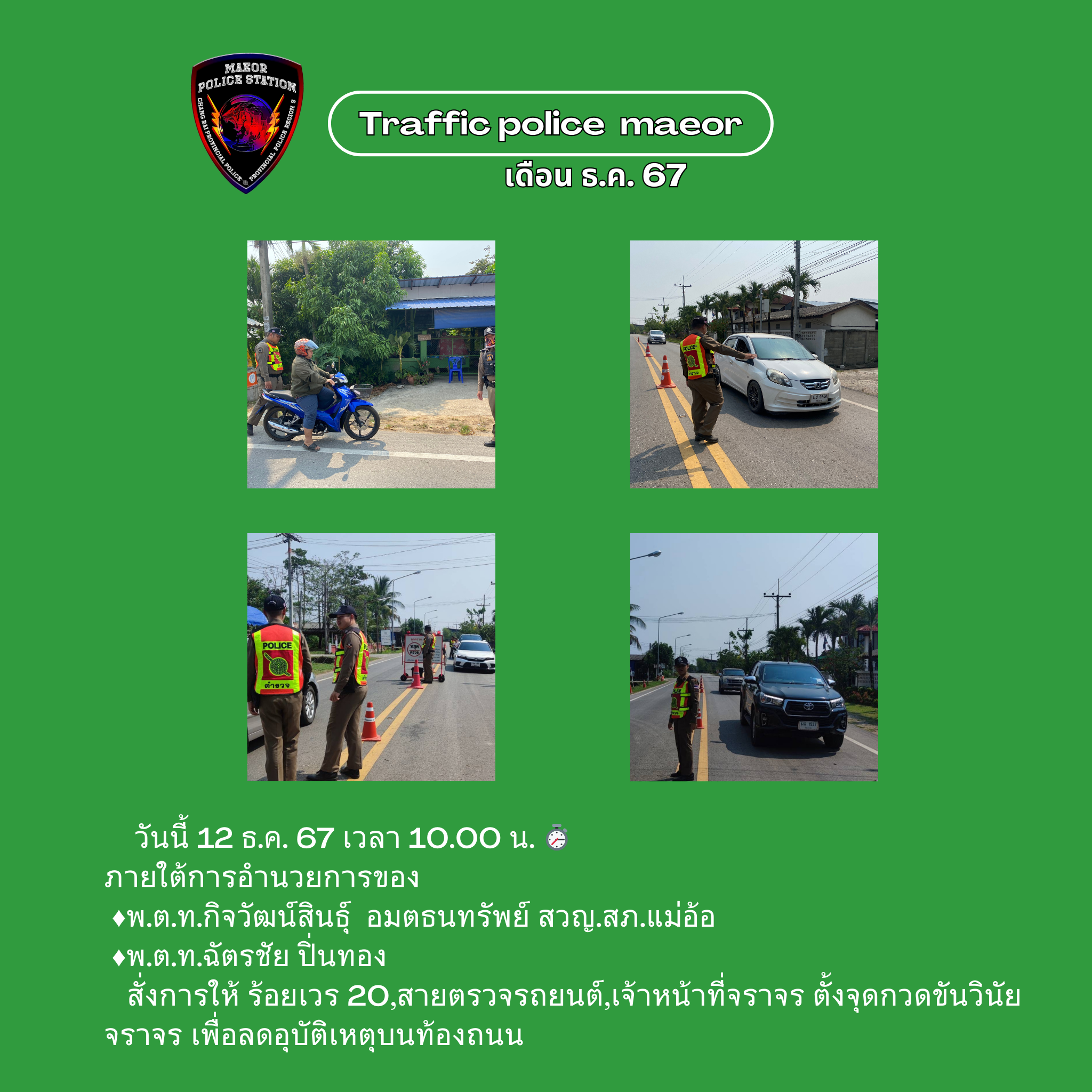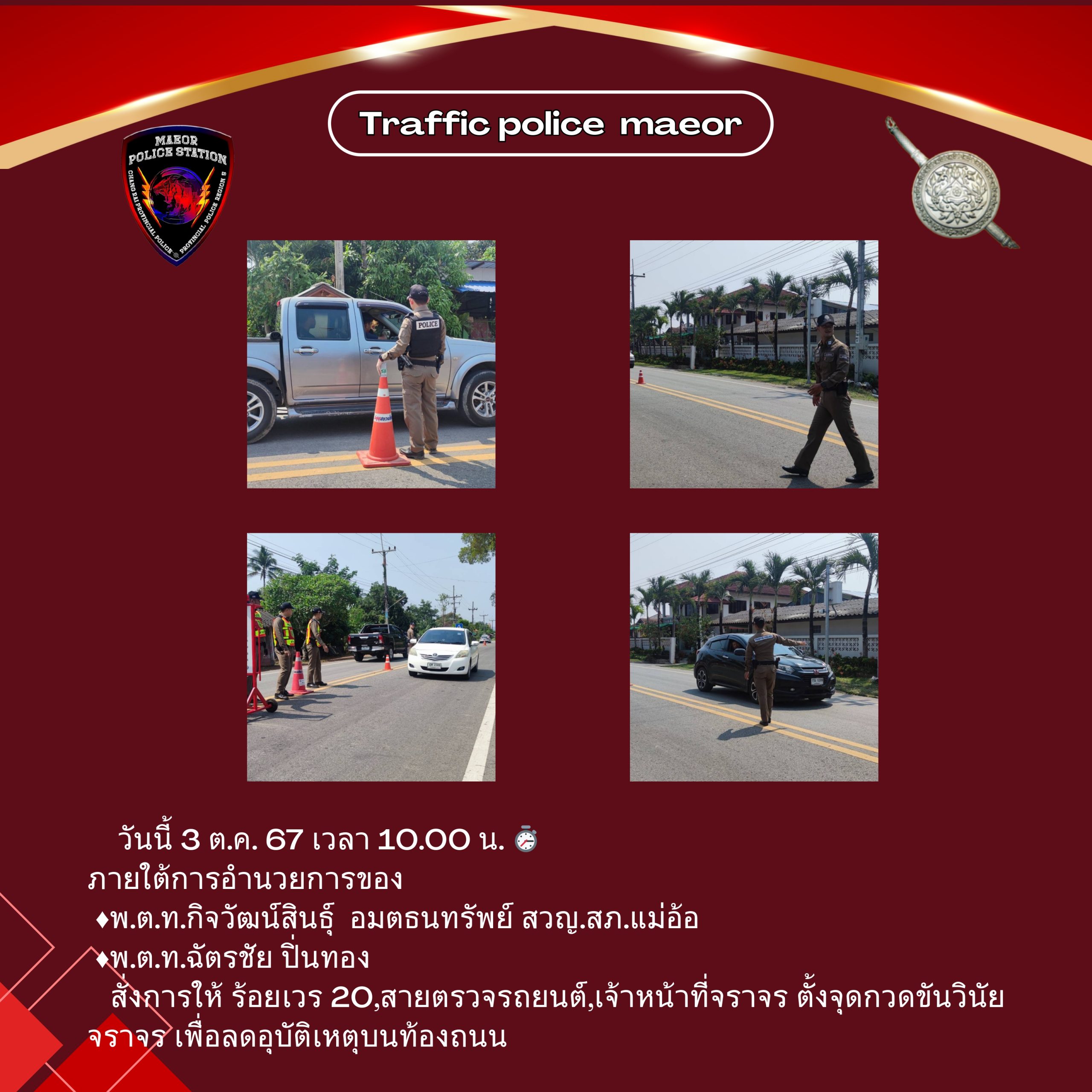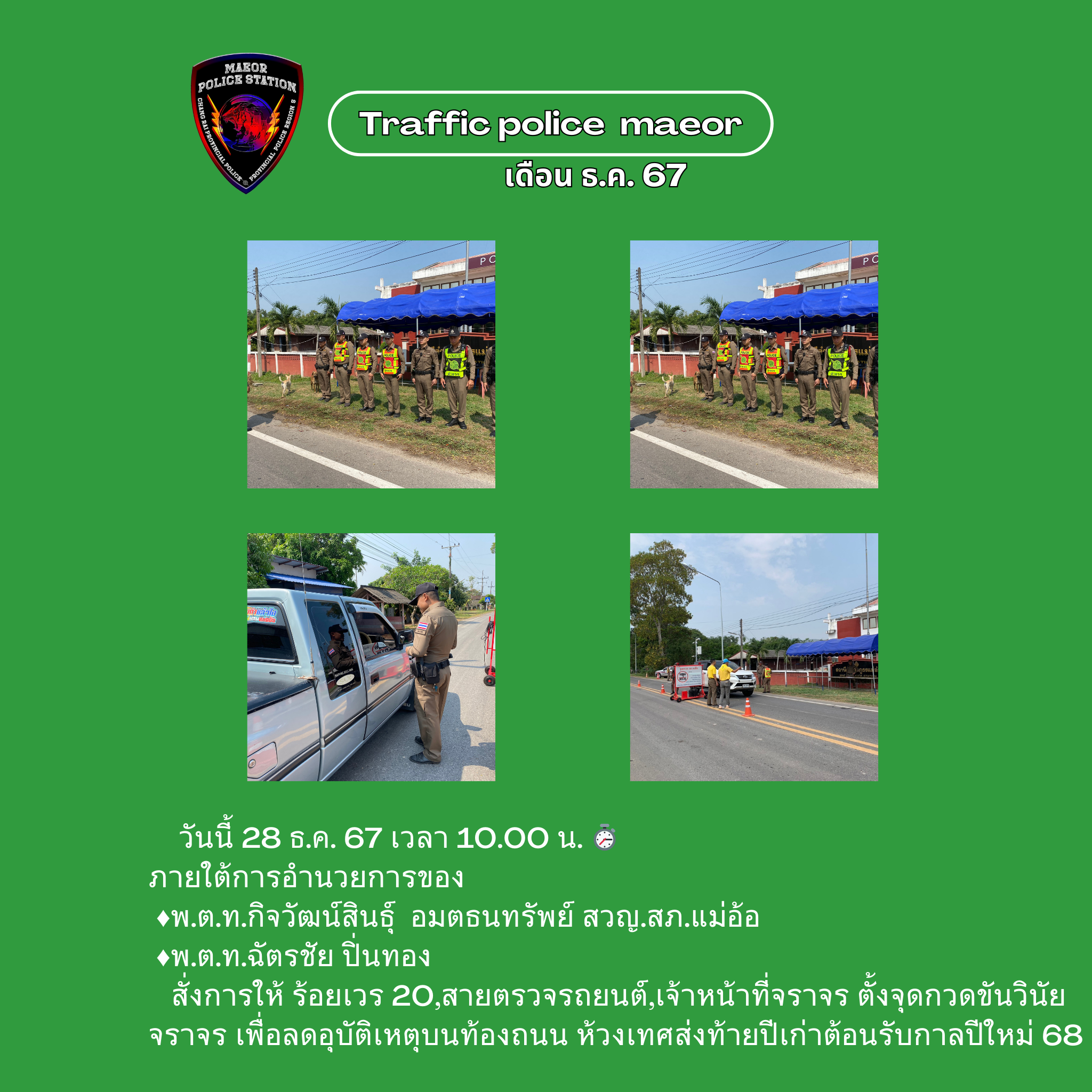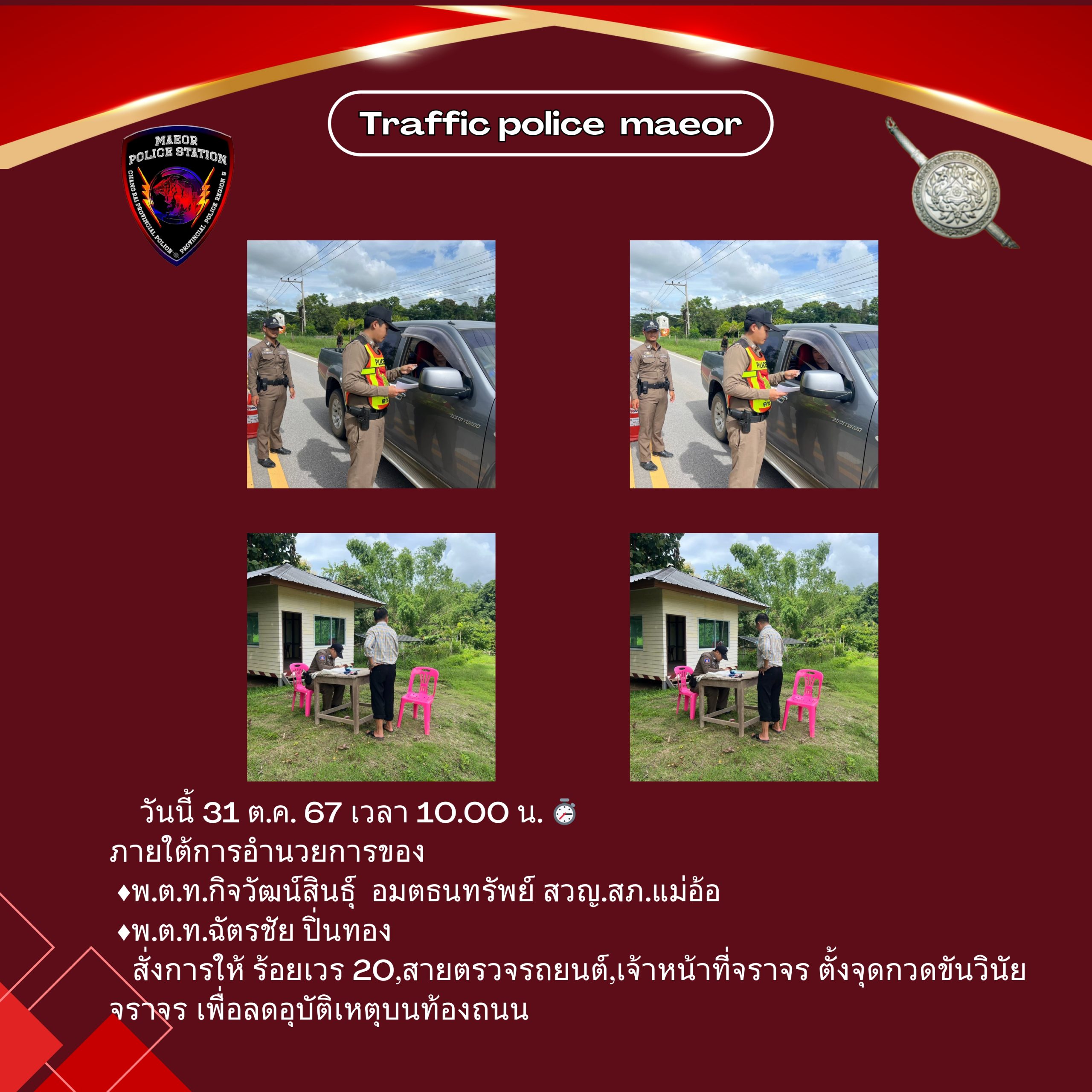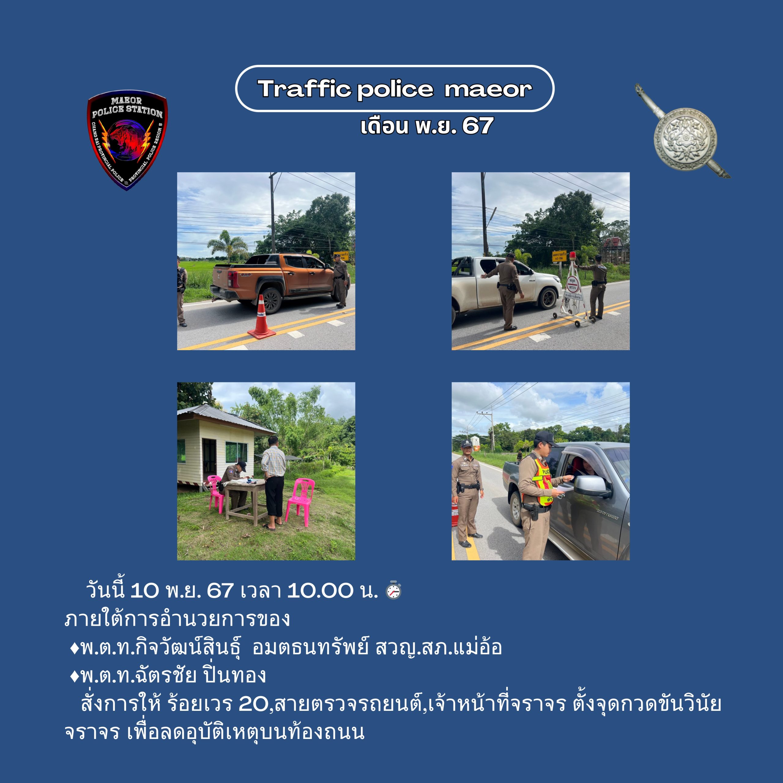วันที่ 21 มีนาคม 2568 เวลา 10.00 น. พันตำรวจโท เทพสวัสดิ์ สุภาวรรณ สารวัตรใหญ่สถานีตำรวจแม่อ้อ เ