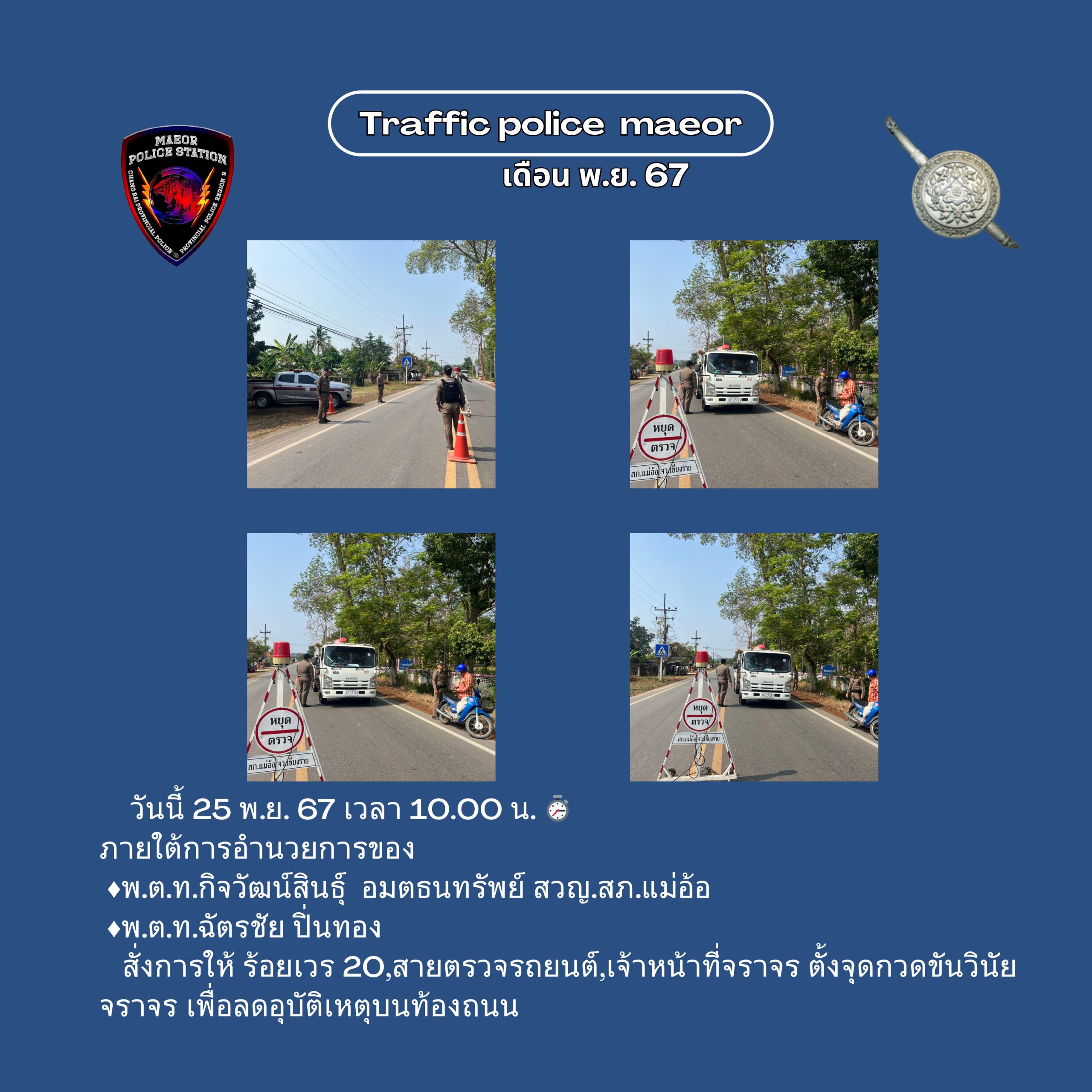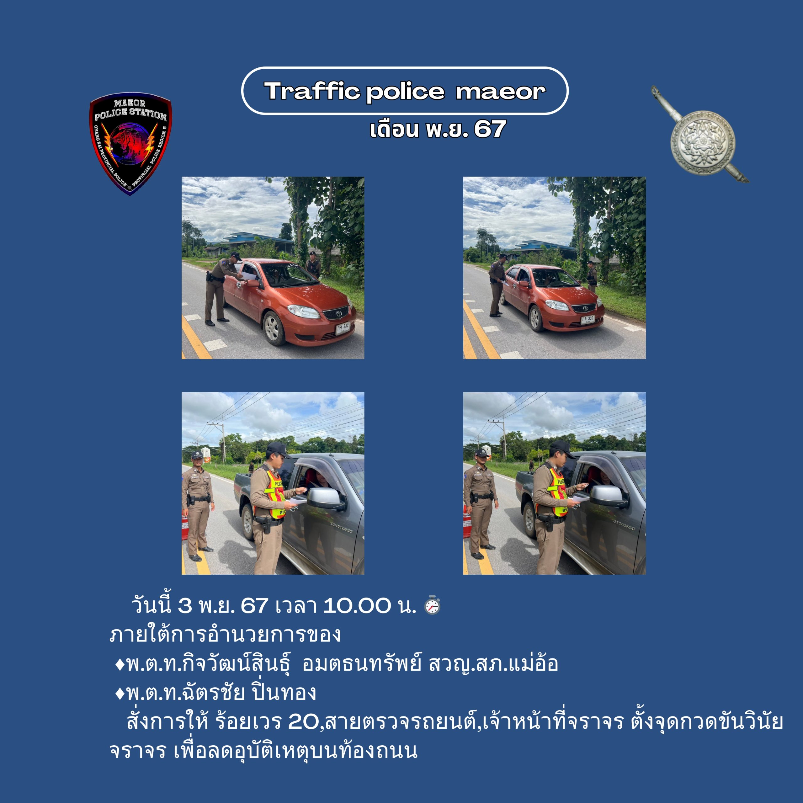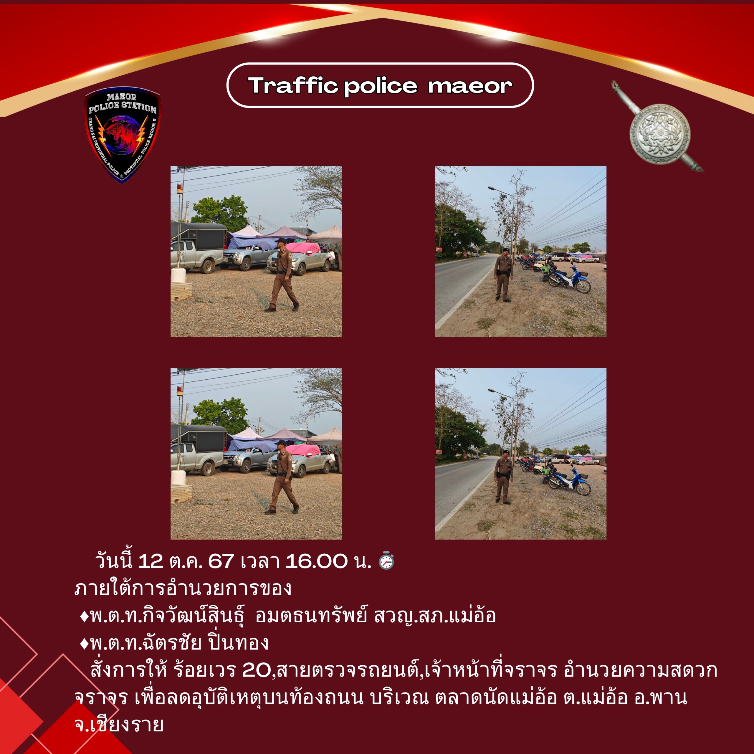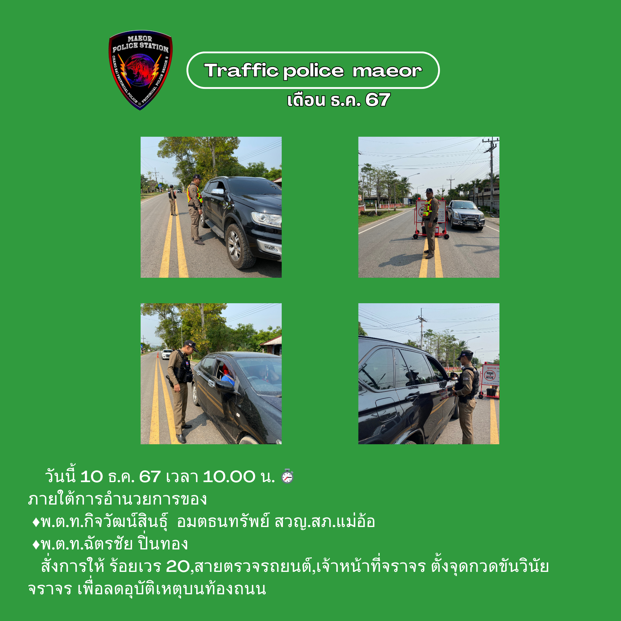 วันที่ 21 มีนาคม 2568 เวลา 10.00 น. พันตำรวจโท เทพสวัสดิ์ สุภาวรรณ สารวัตรใหญ่สถานีตำรวจแม่อ้อ เ