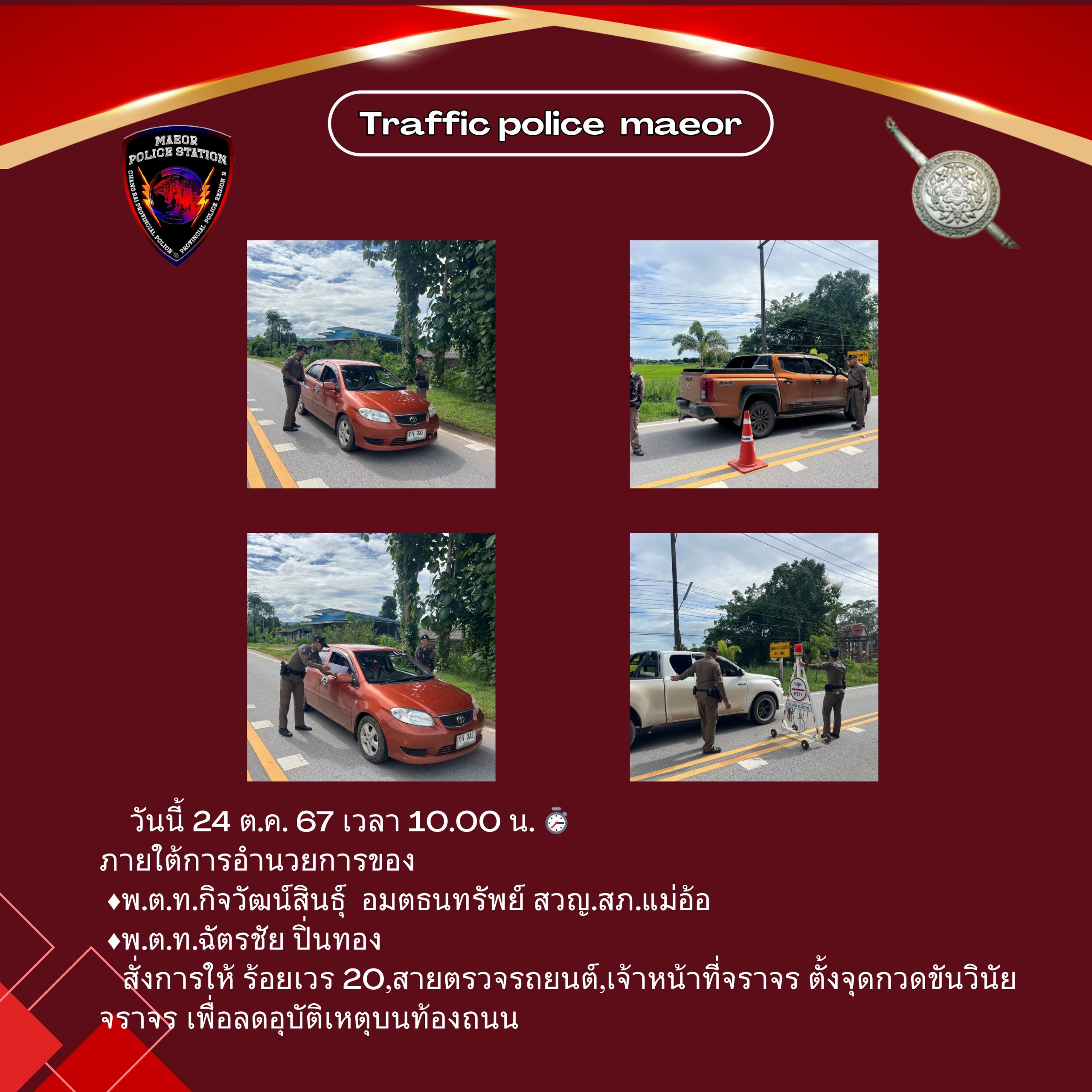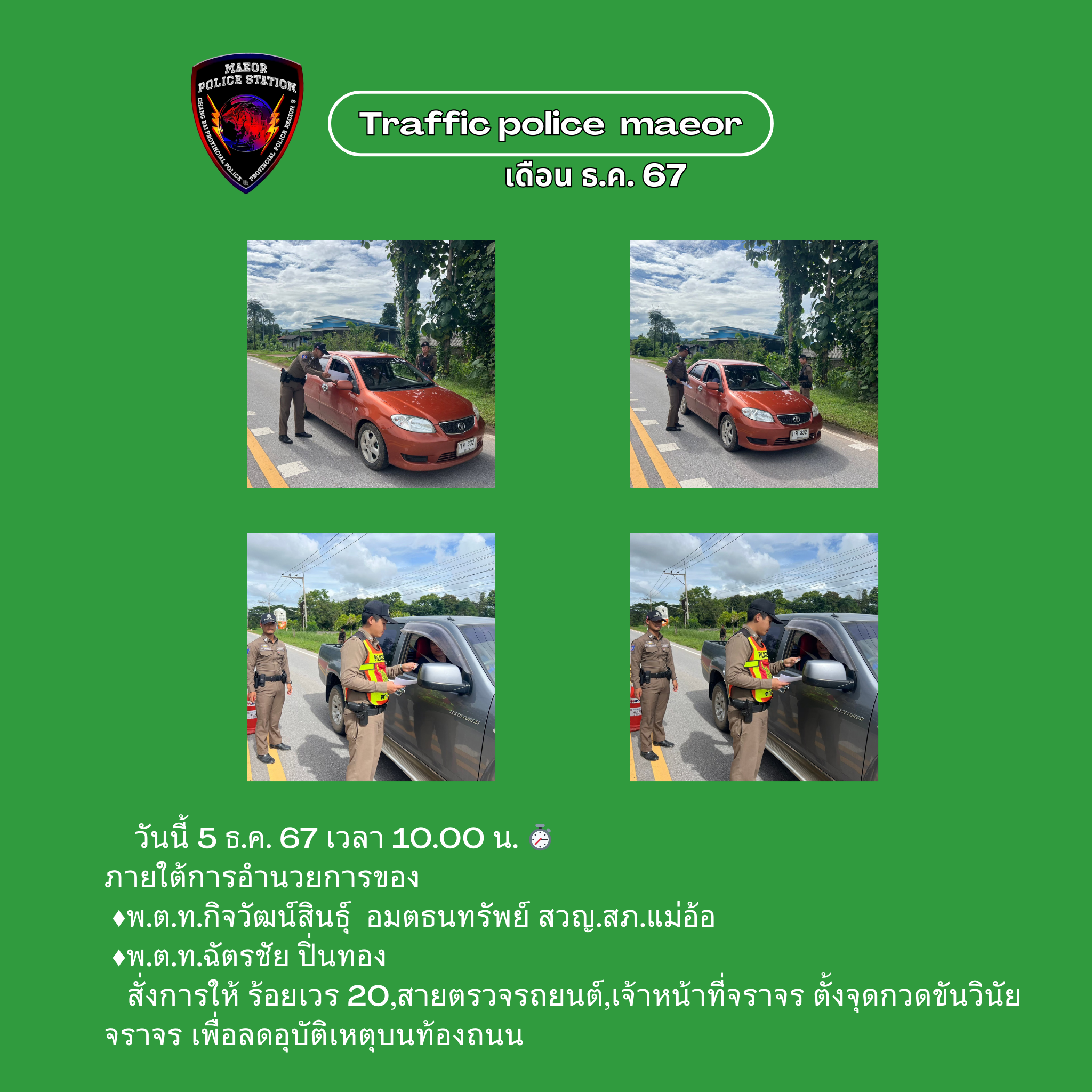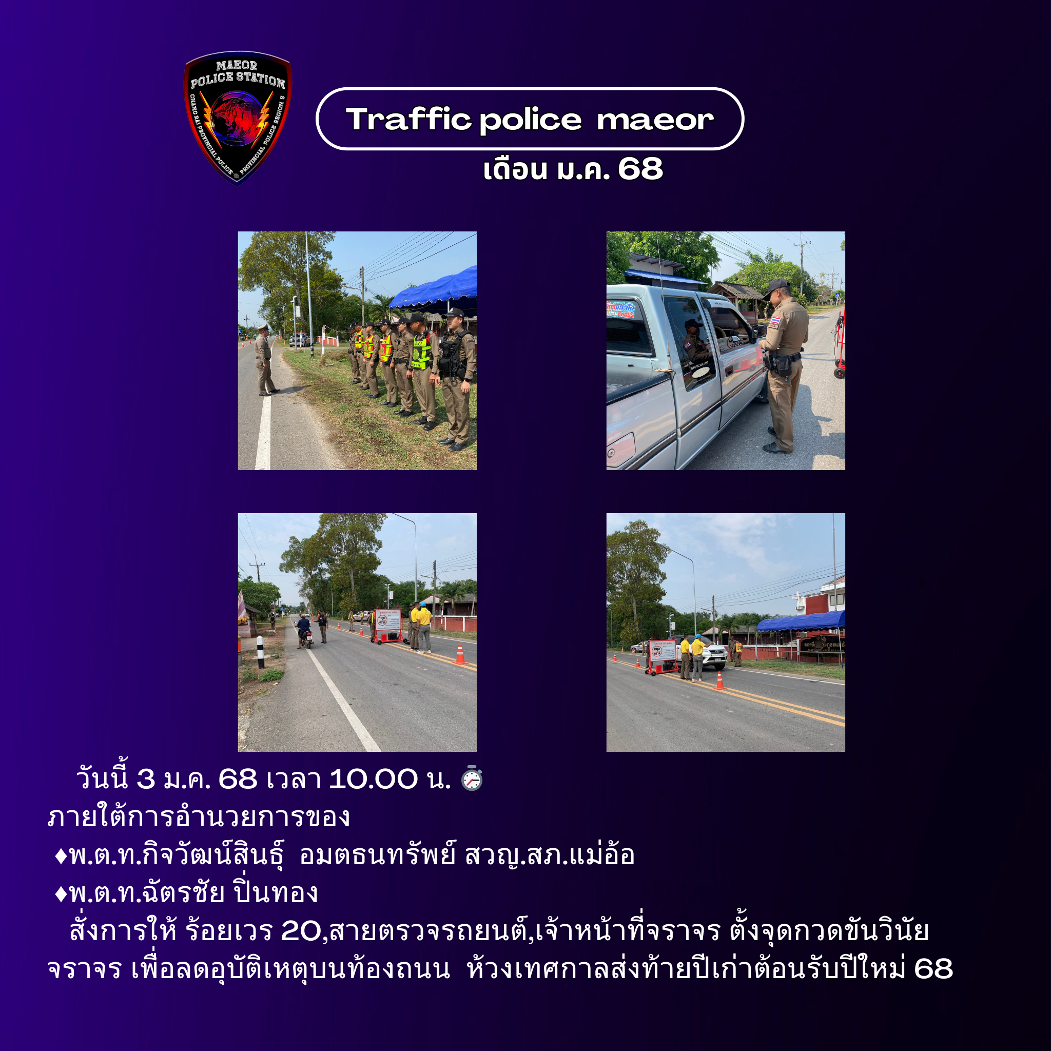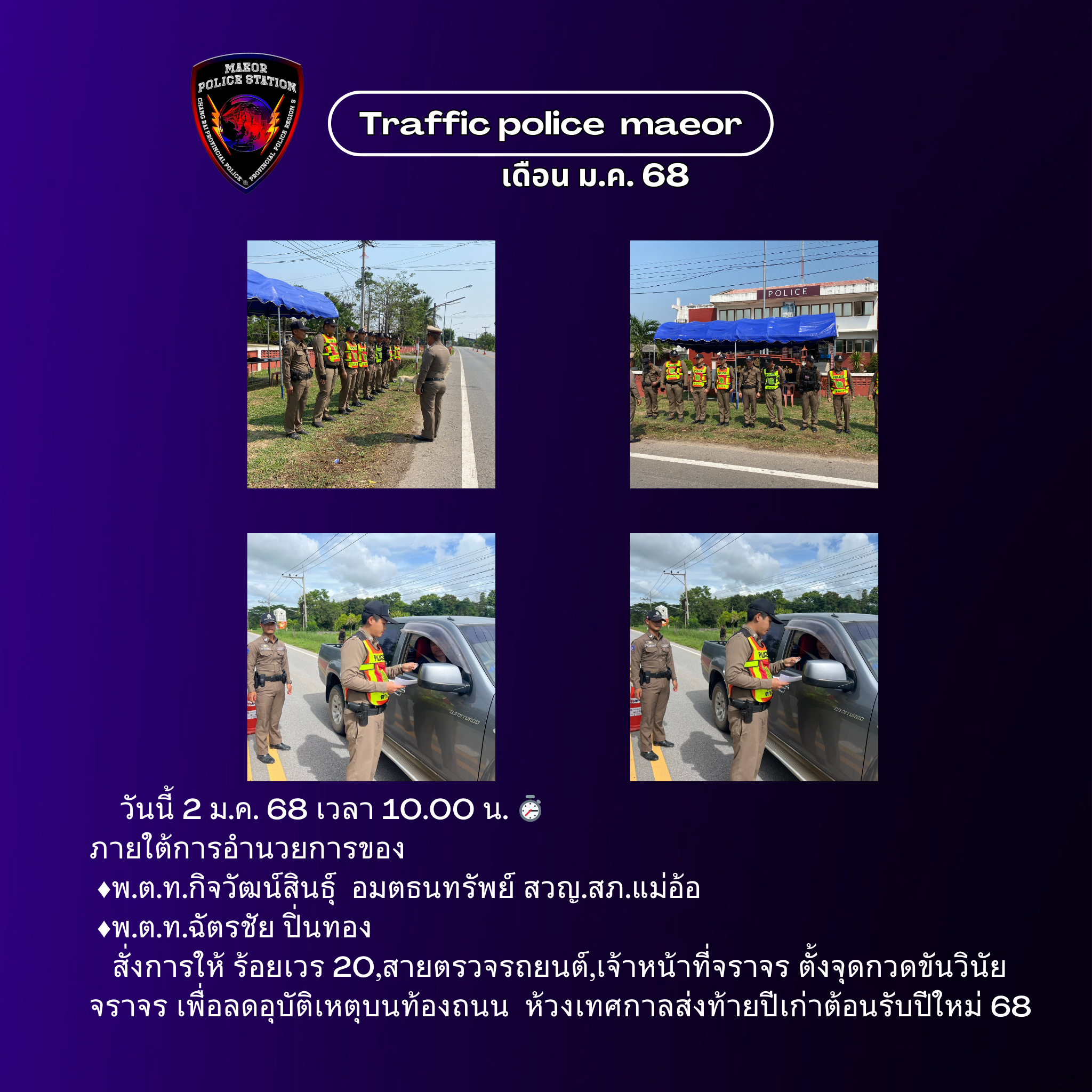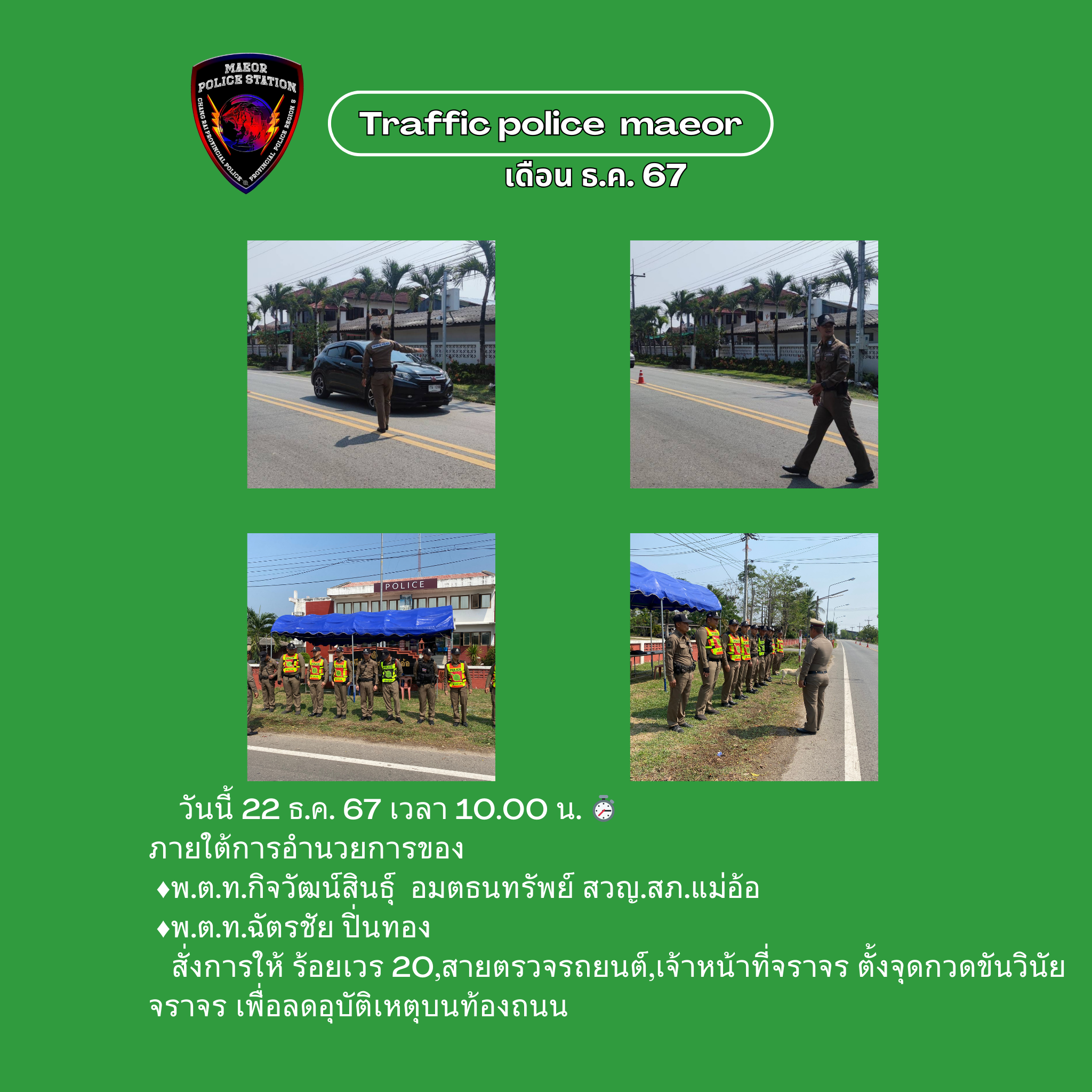 วันที่ 21 มีนาคม 2568 เวลา 10.00 น. พันตำรวจโท เทพสวัสดิ์ สุภาวรรณ สารวัตรใหญ่สถานีตำรวจแม่อ้อ เ