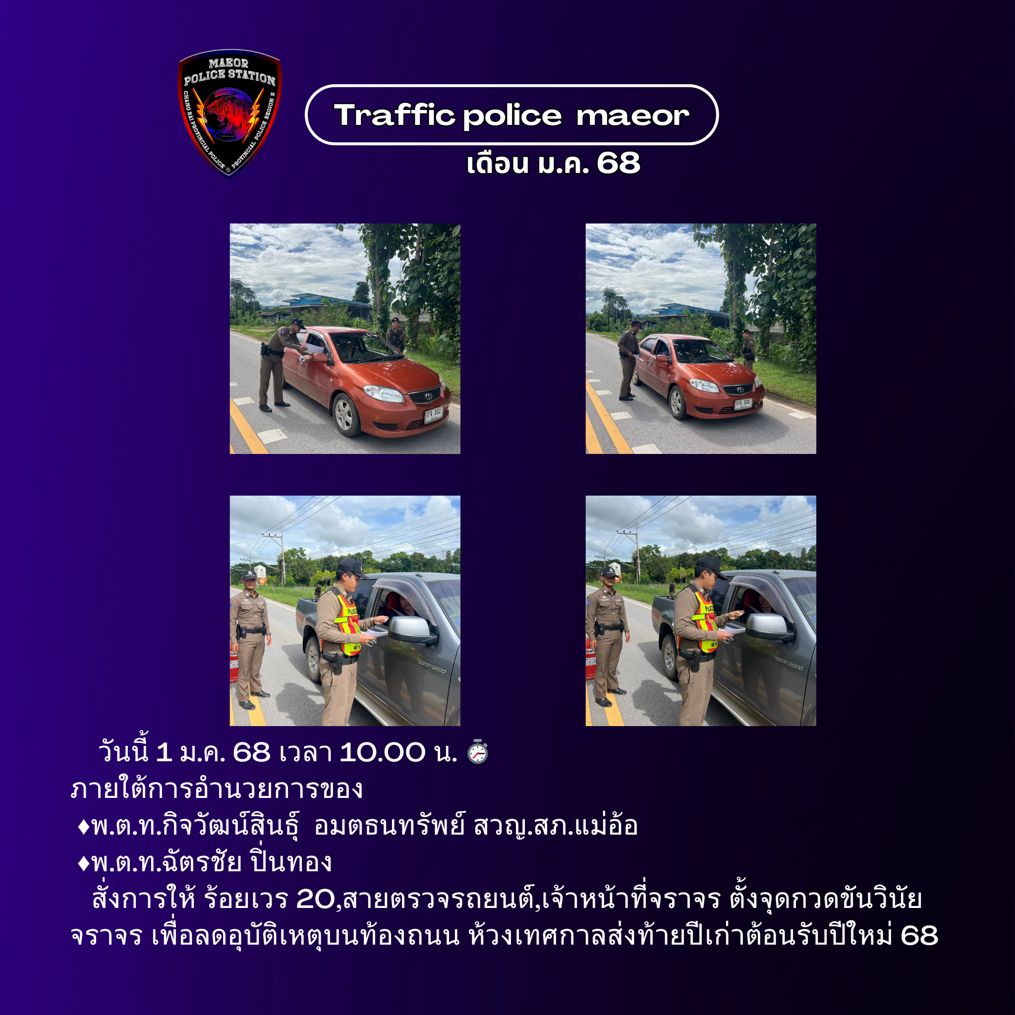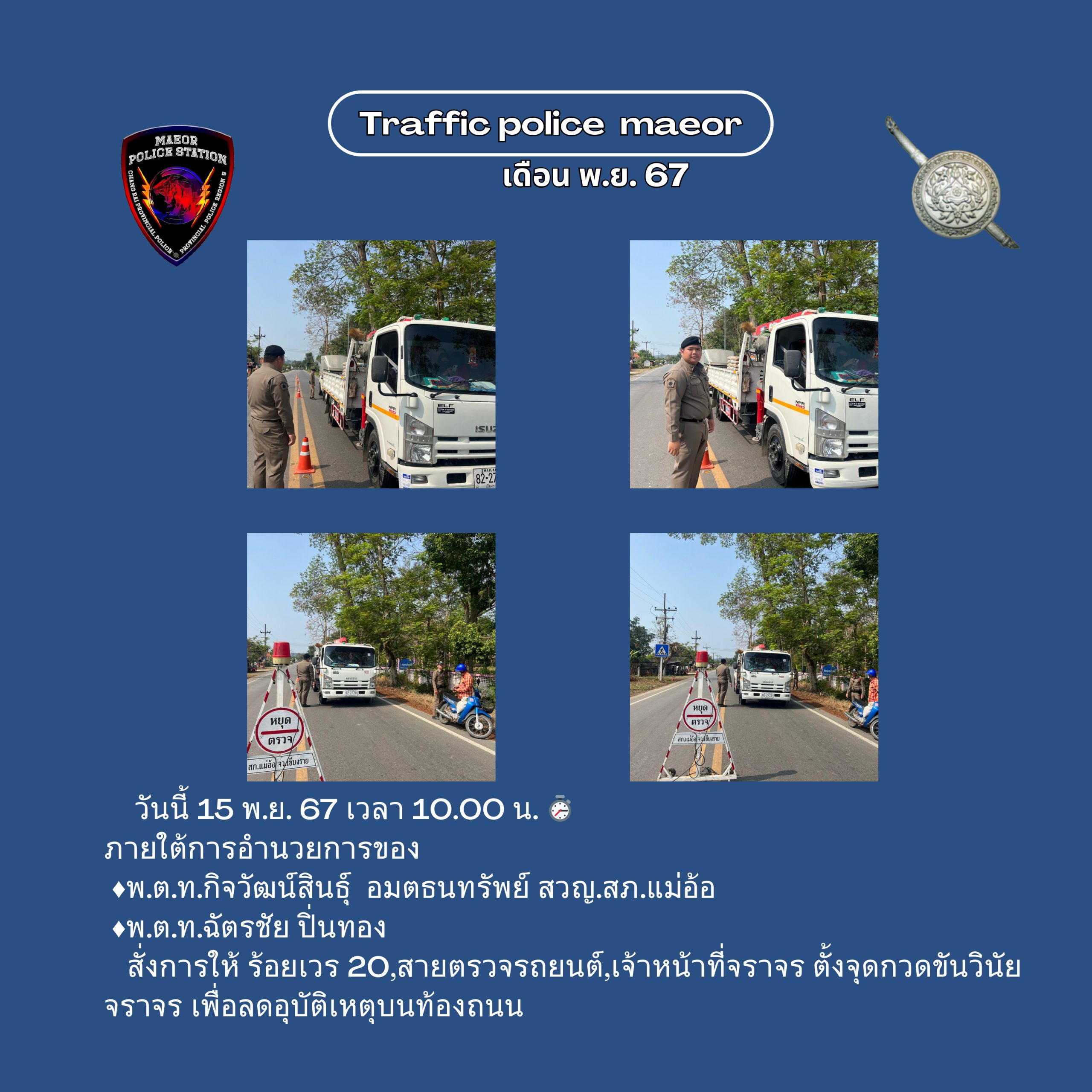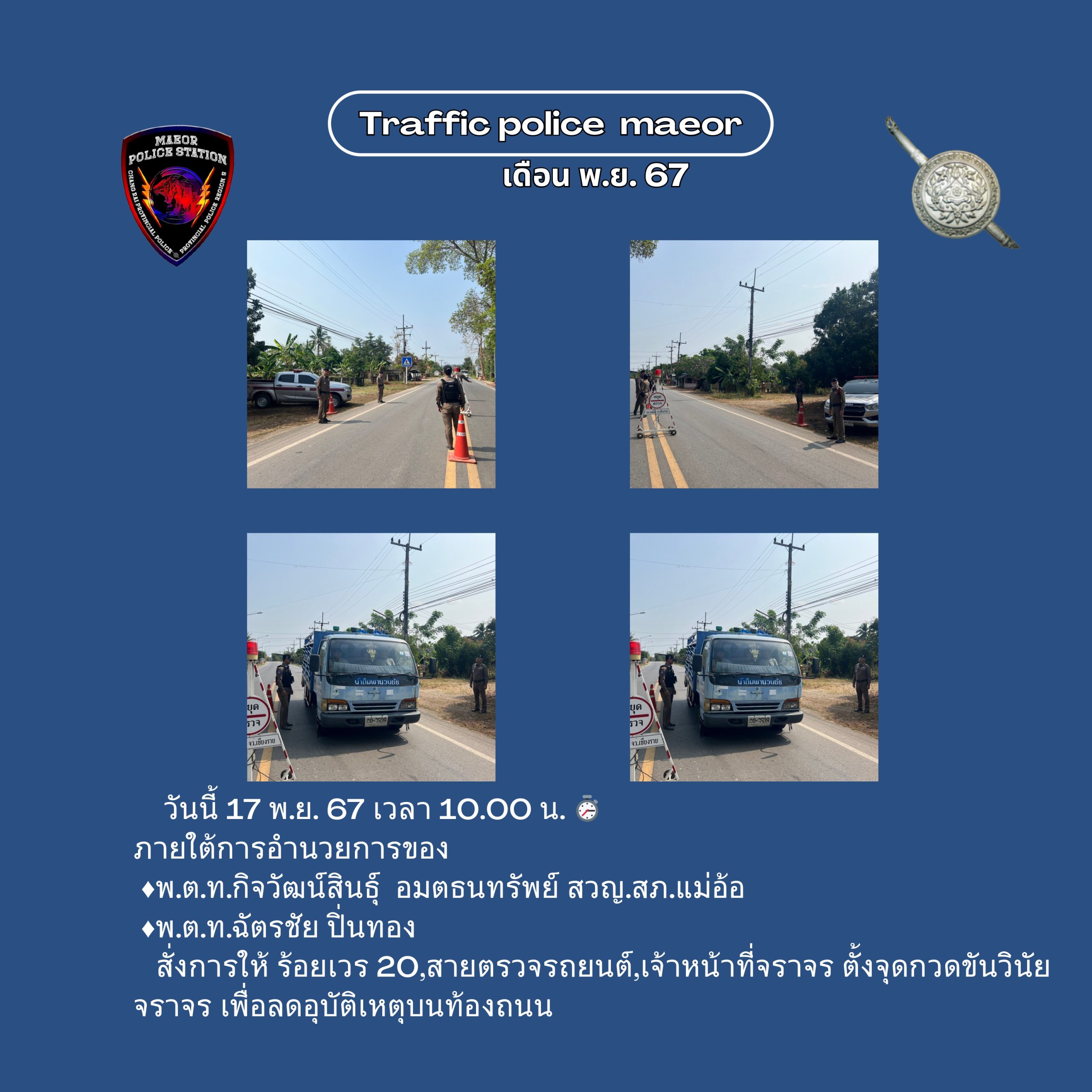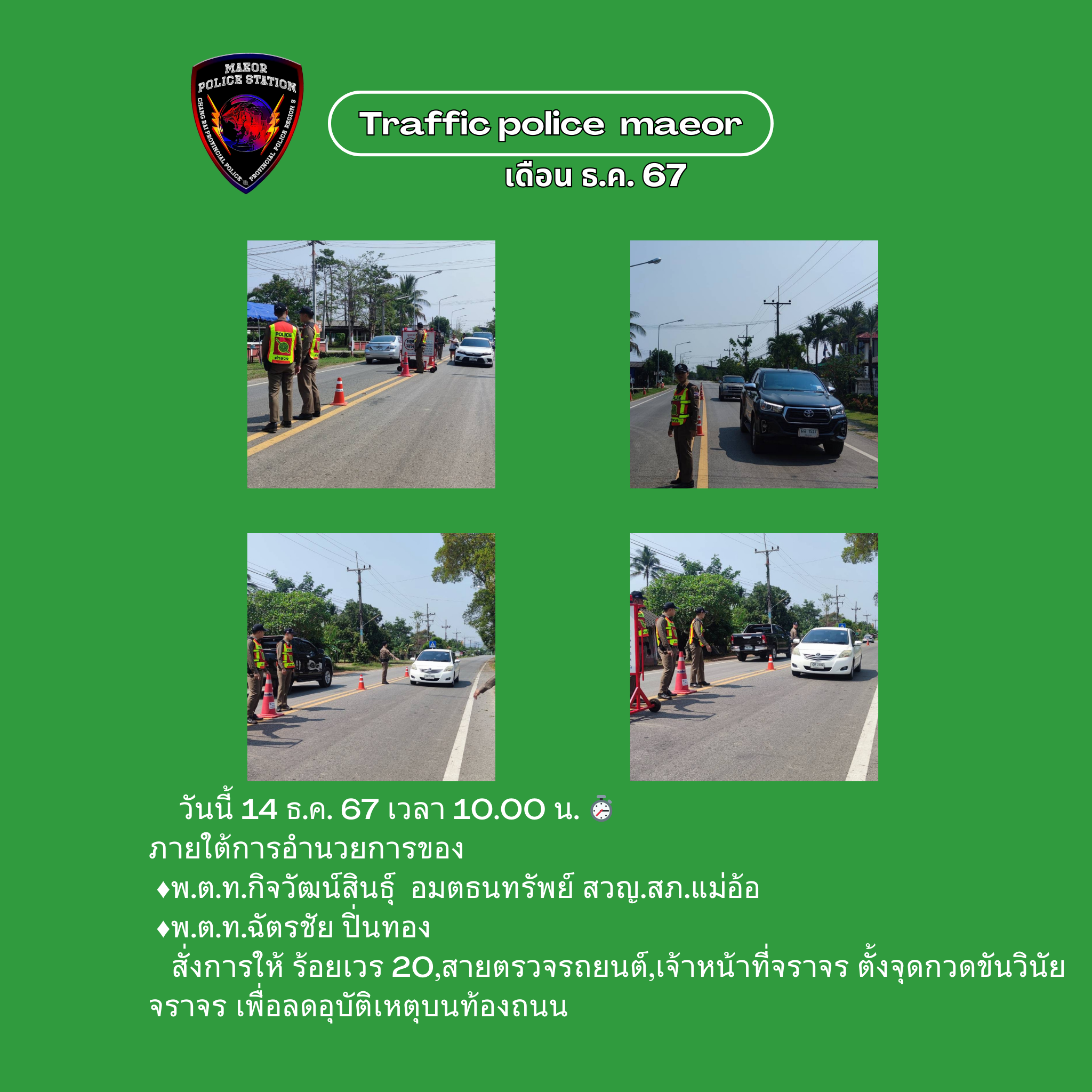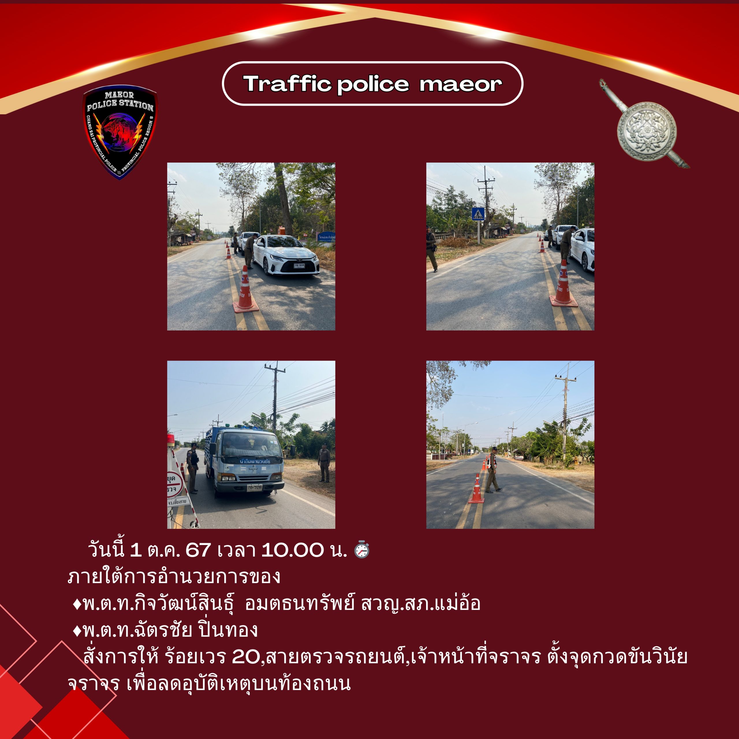 วันที่ 21 มีนาคม 2568 เวลา 10.00 น. พันตำรวจโท เทพสวัสดิ์ สุภาวรรณ สารวัตรใหญ่สถานีตำรวจแม่อ้อ เ