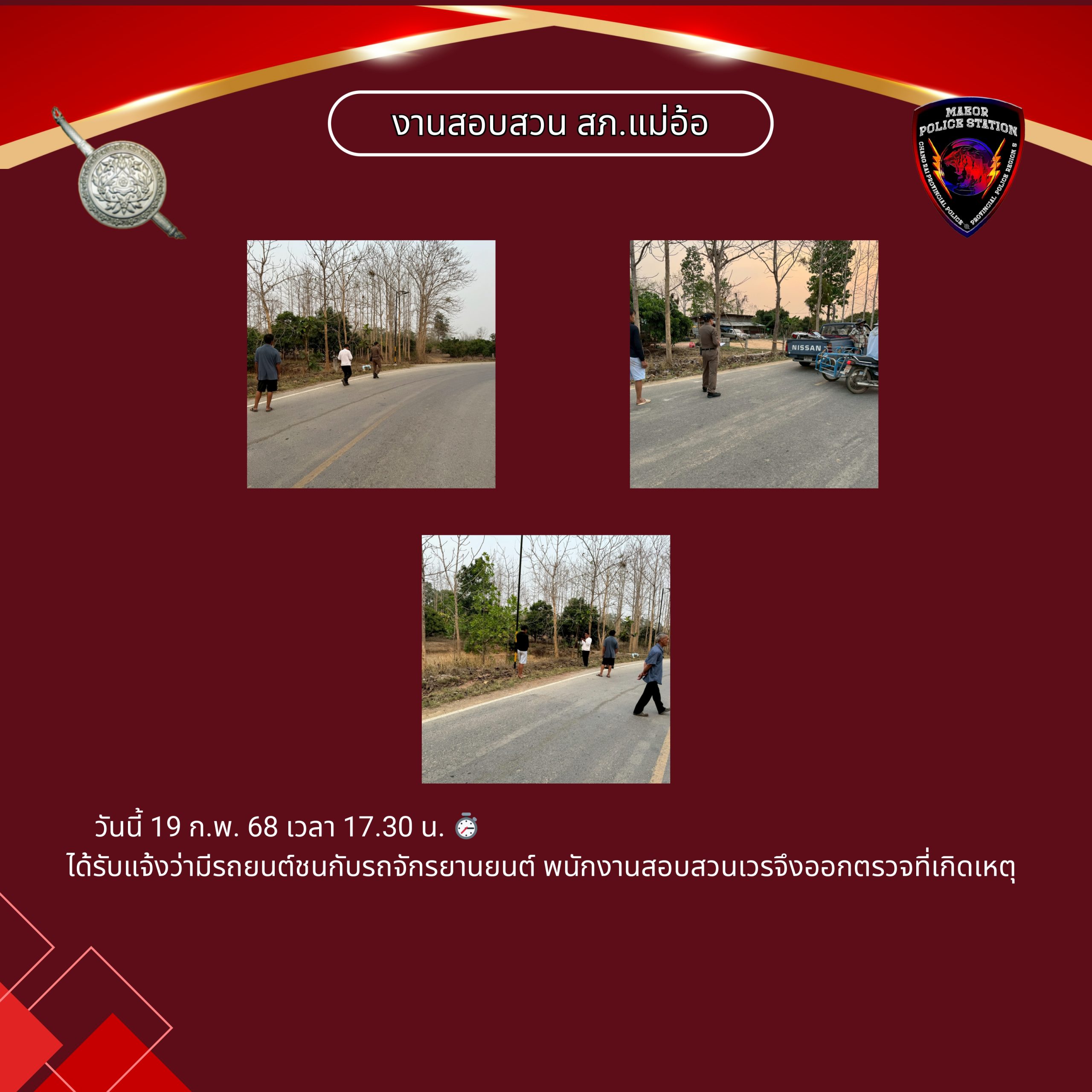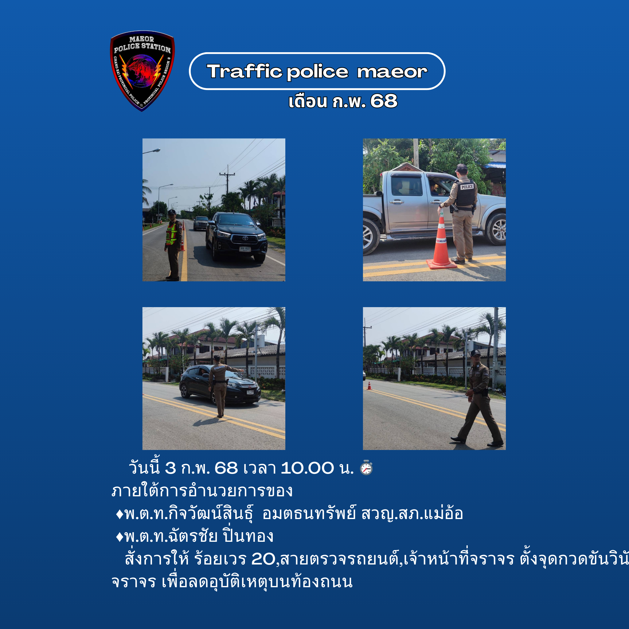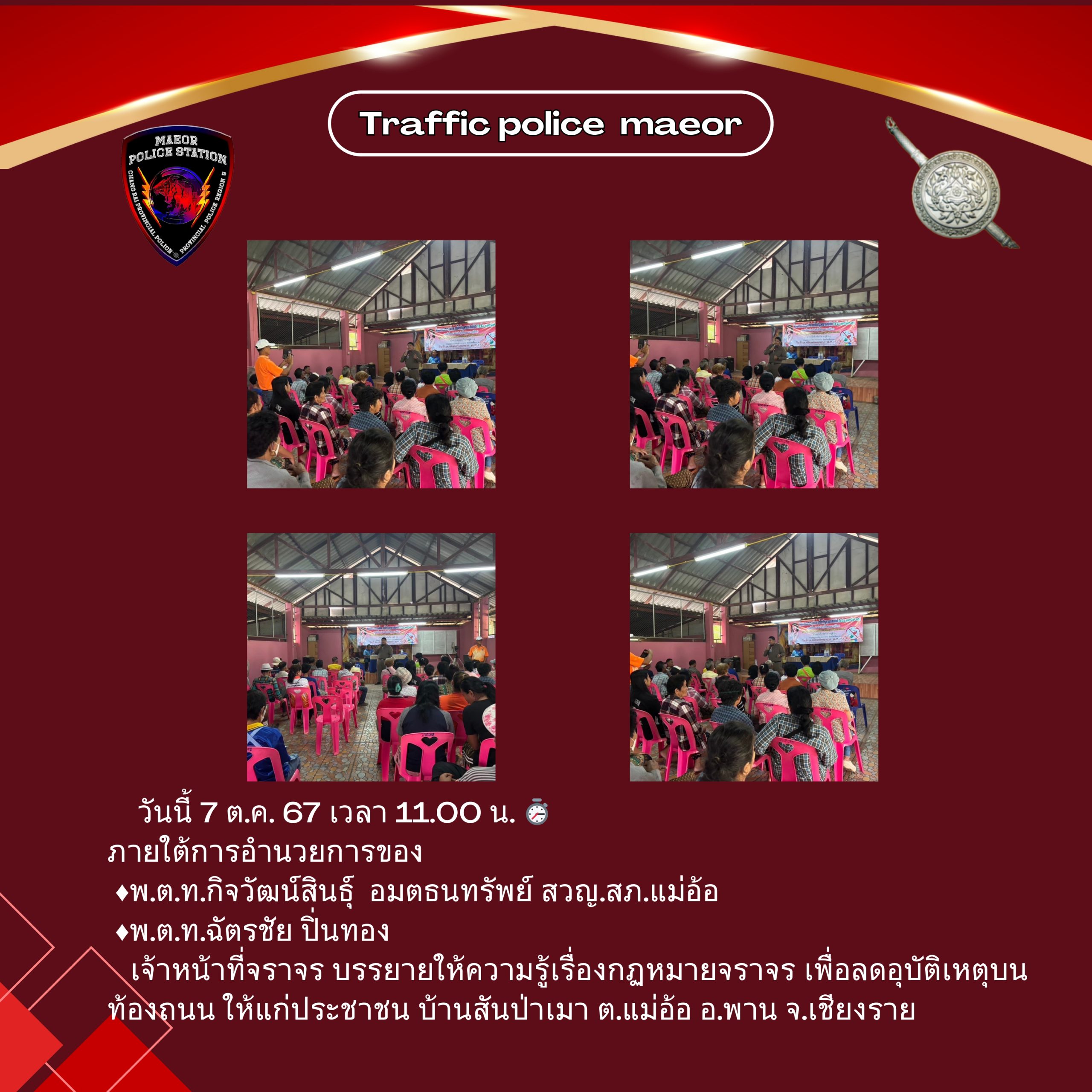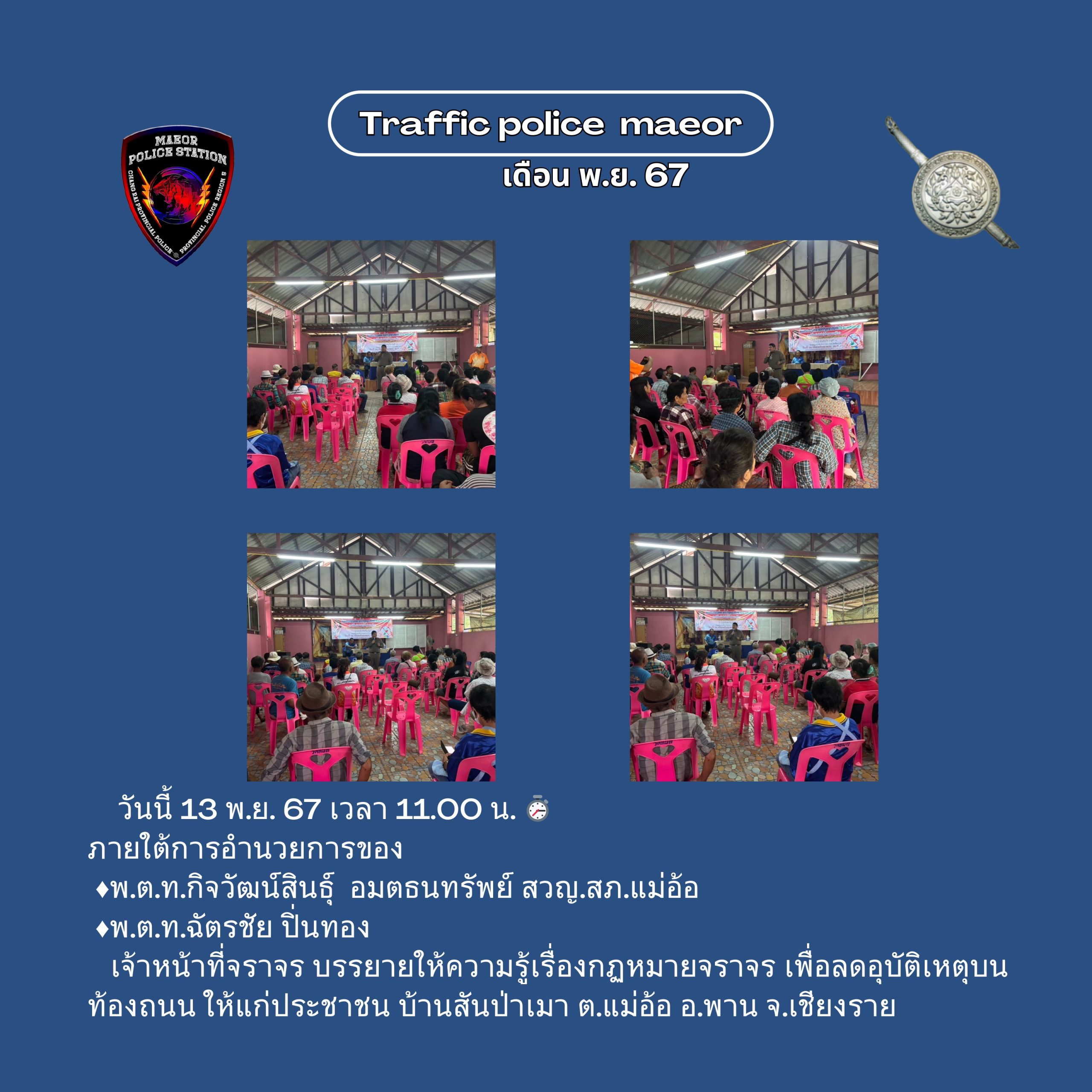 วันที่ 11 กุมภาพันธ์ 2569 (เวลา 15.00-16.30 น.) นำโดย พ.ต.ท.เทพสวัสดิ์ สุภาวรรณ สวญ.สภ.แม่อ้อ พร้อมด