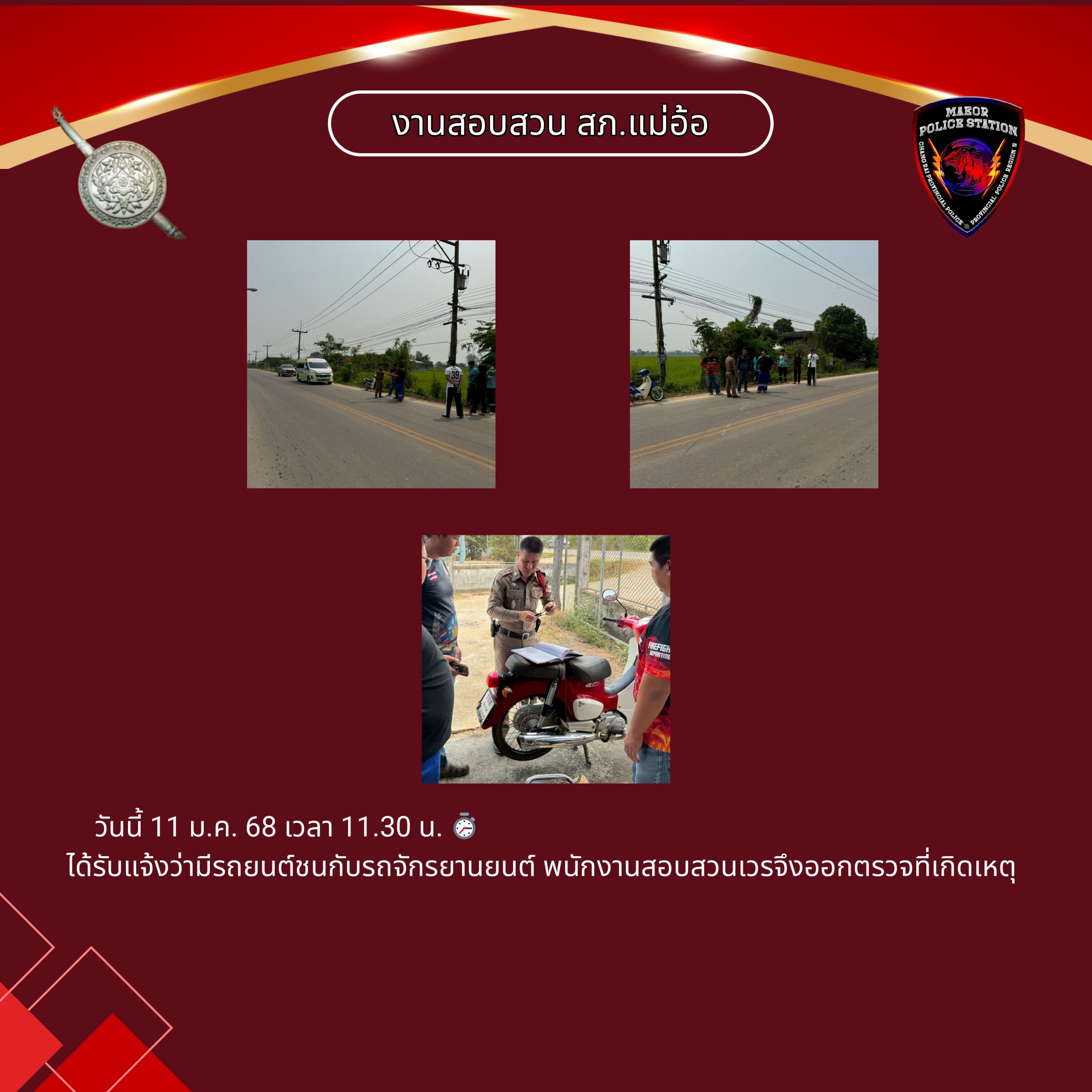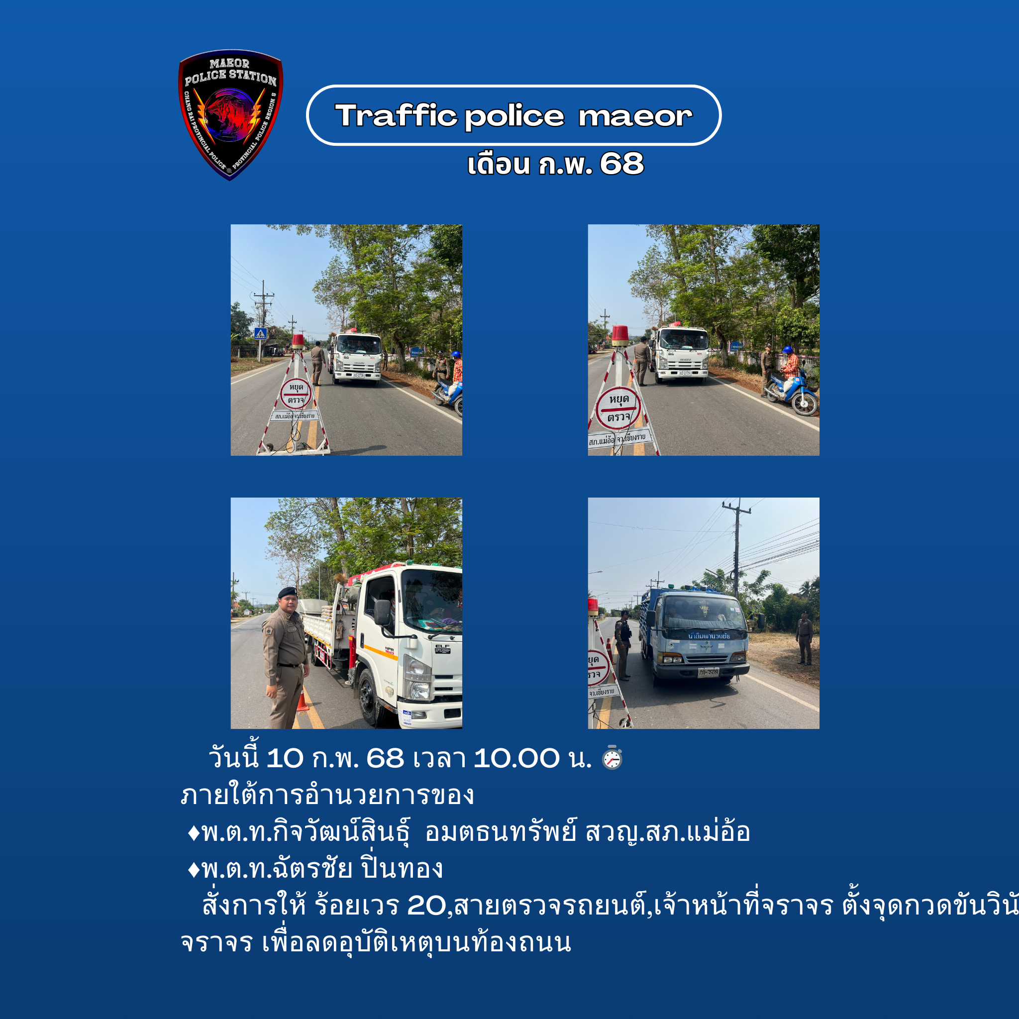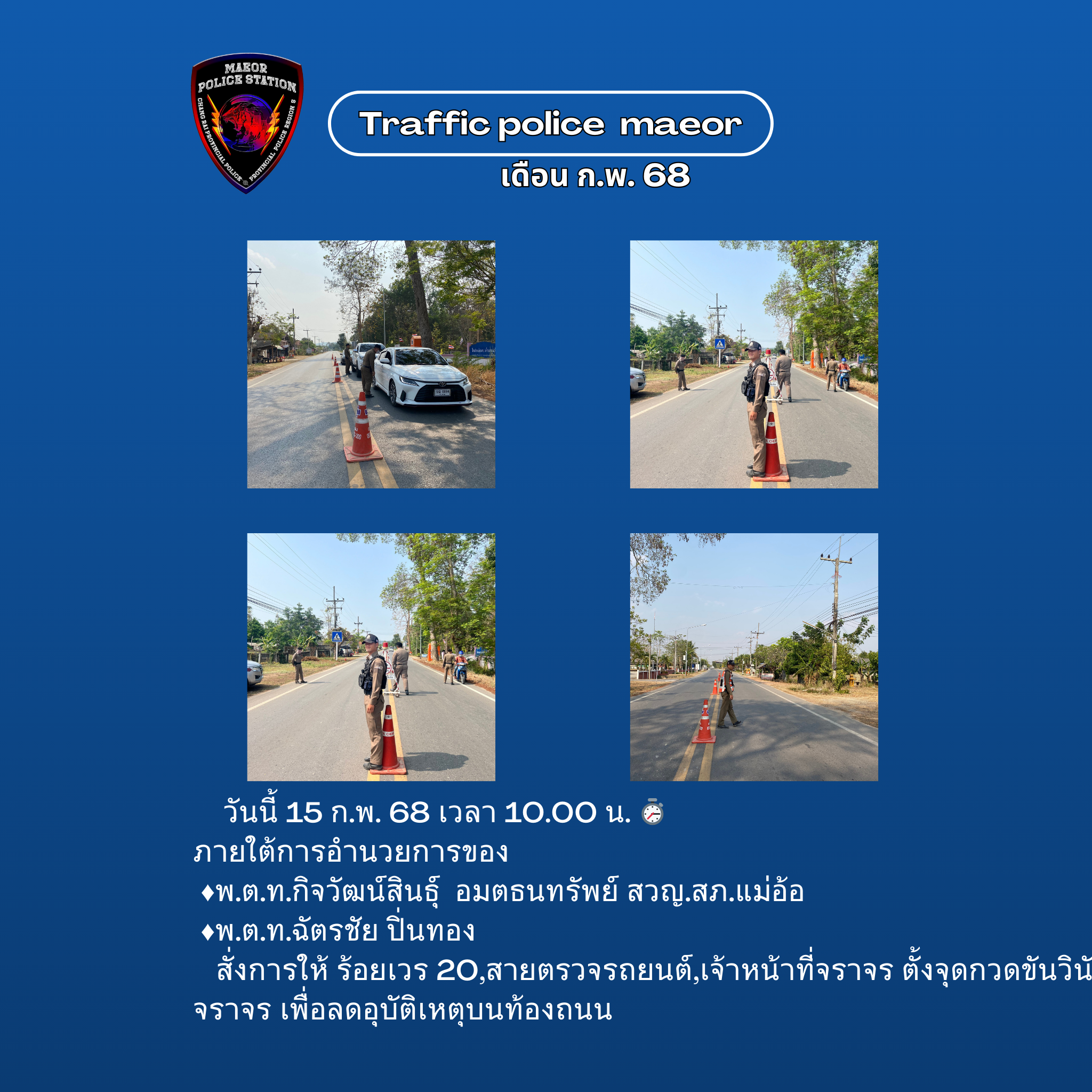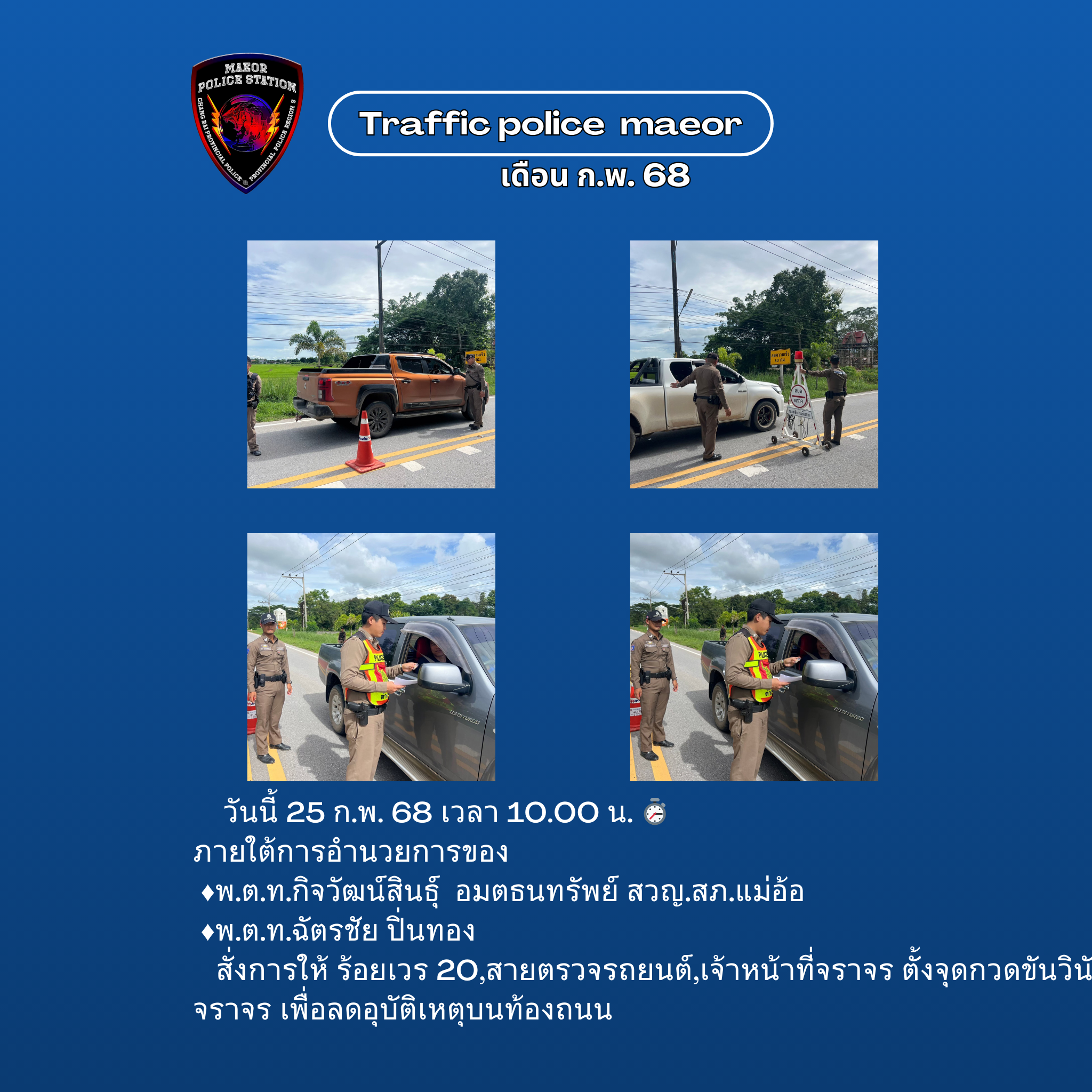 วันที่ 11 กุมภาพันธ์ 2569 (เวลา 15.00-16.30 น.) นำโดย พ.ต.ท.เทพสวัสดิ์ สุภาวรรณ สวญ.สภ.แม่อ้อ พร้อมด