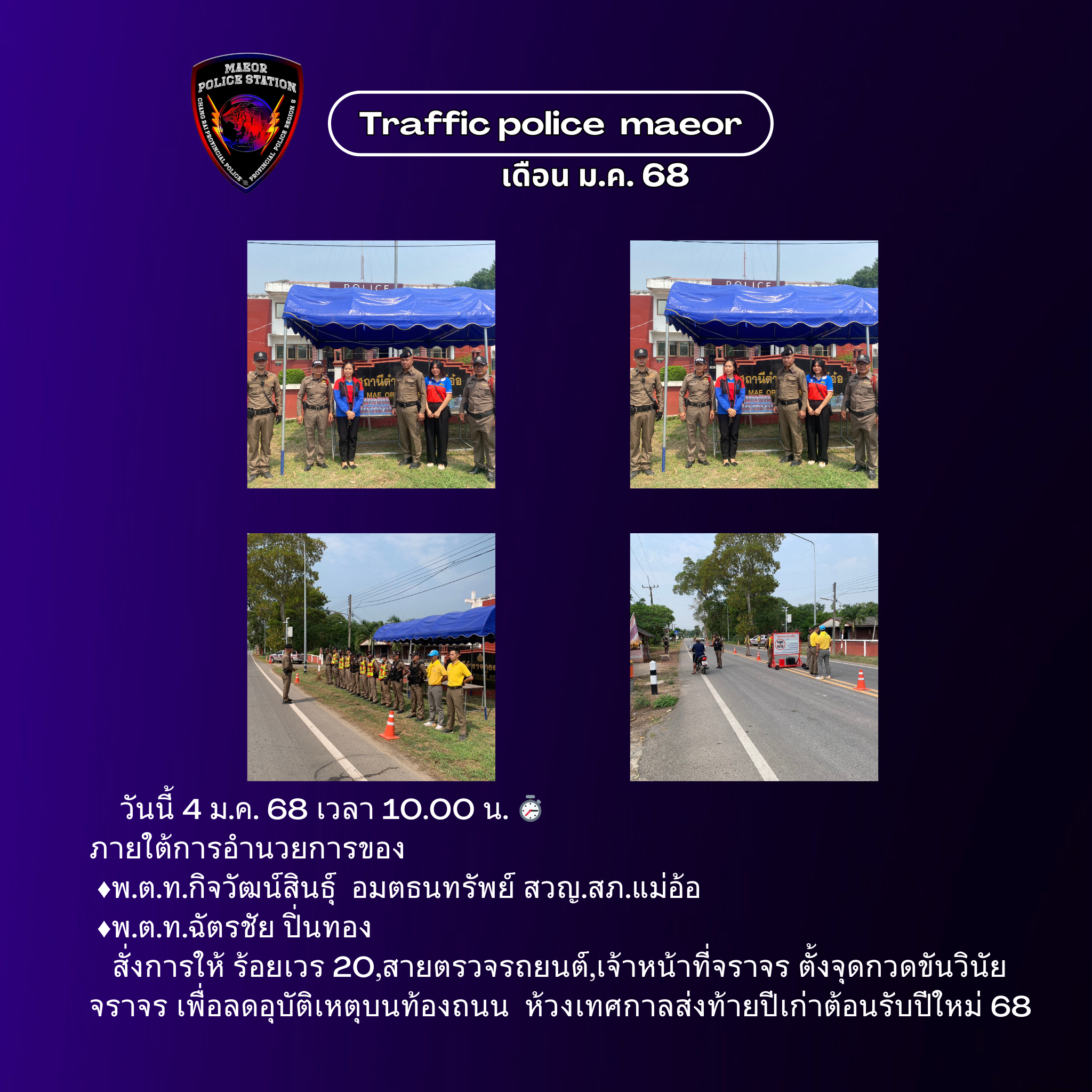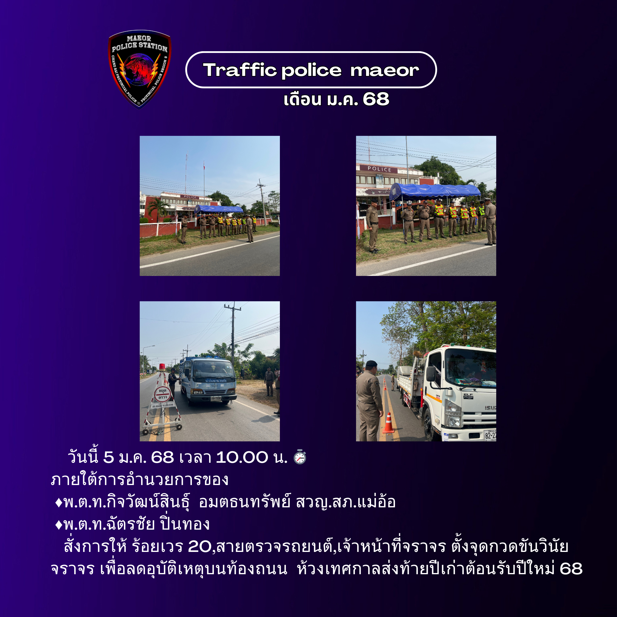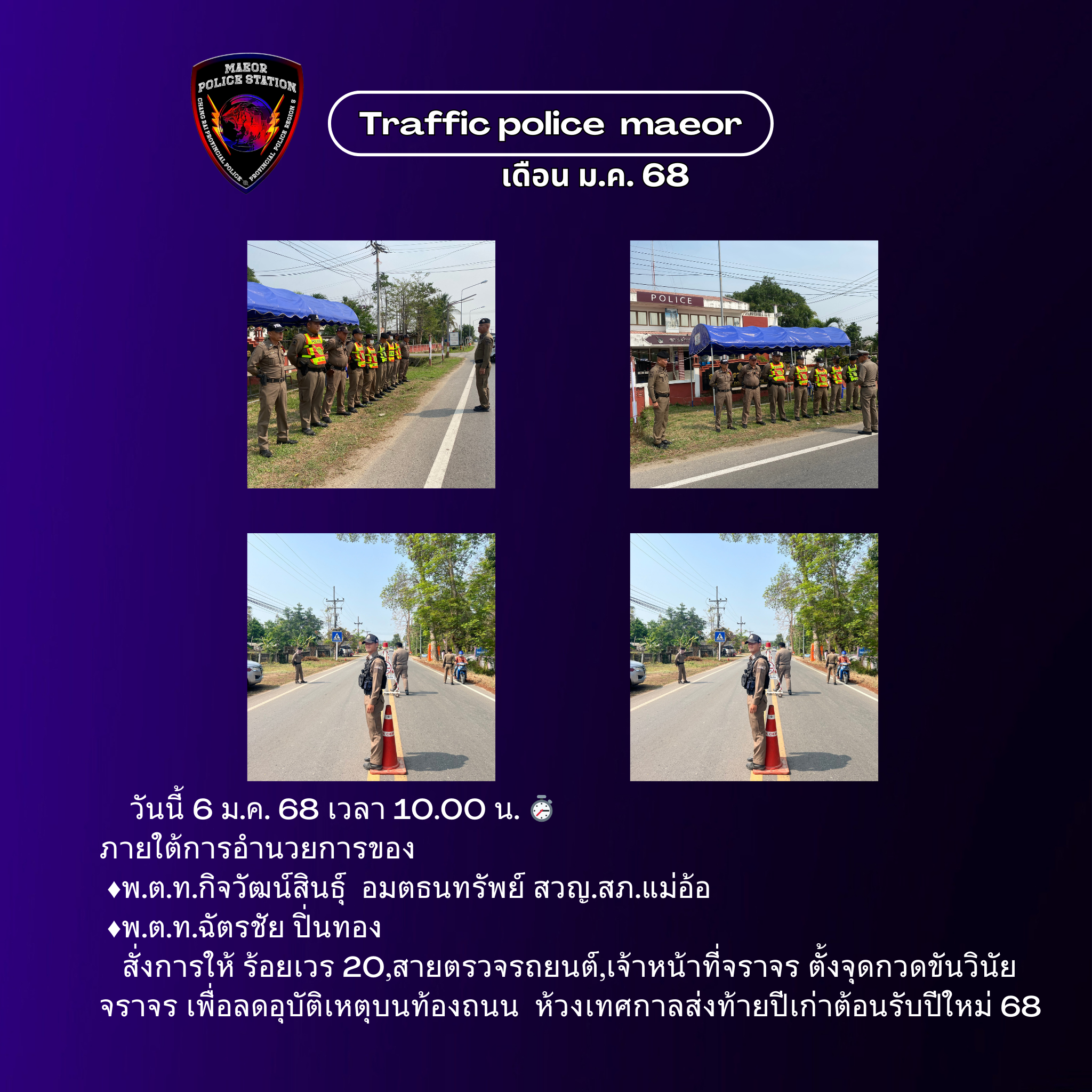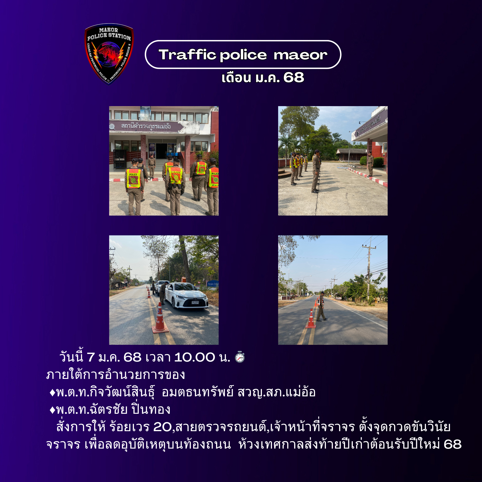 วันที่ 11 กุมภาพันธ์ 2569 (เวลา 15.00-16.30 น.) นำโดย พ.ต.ท.เทพสวัสดิ์ สุภาวรรณ สวญ.สภ.แม่อ้อ พร้อมด