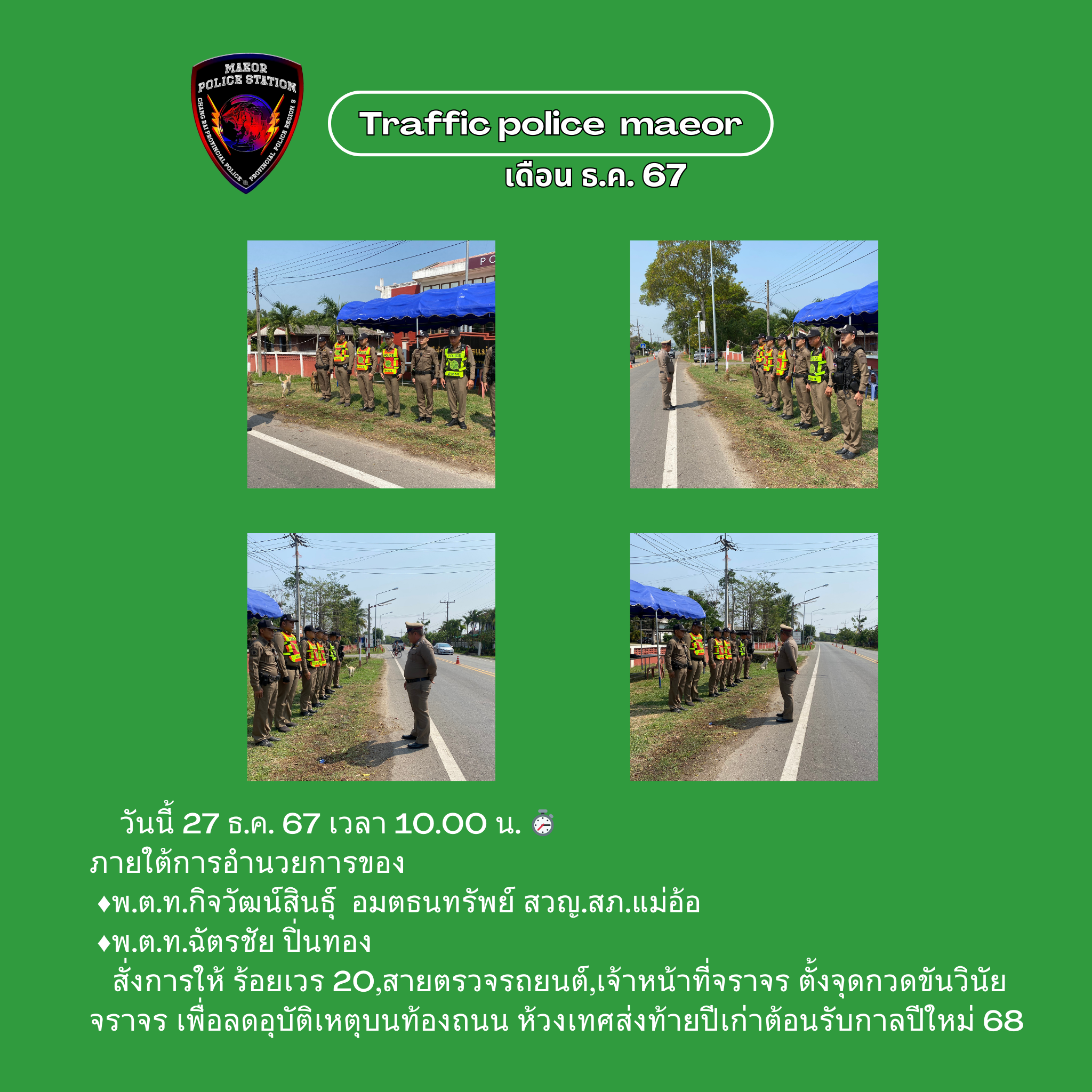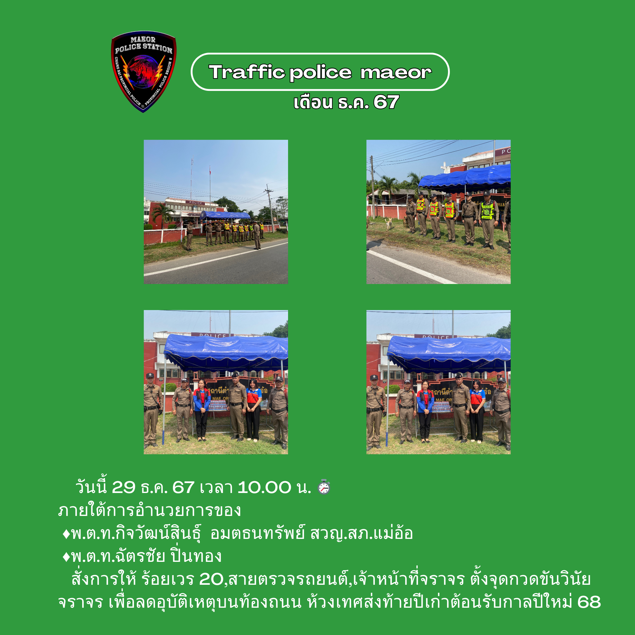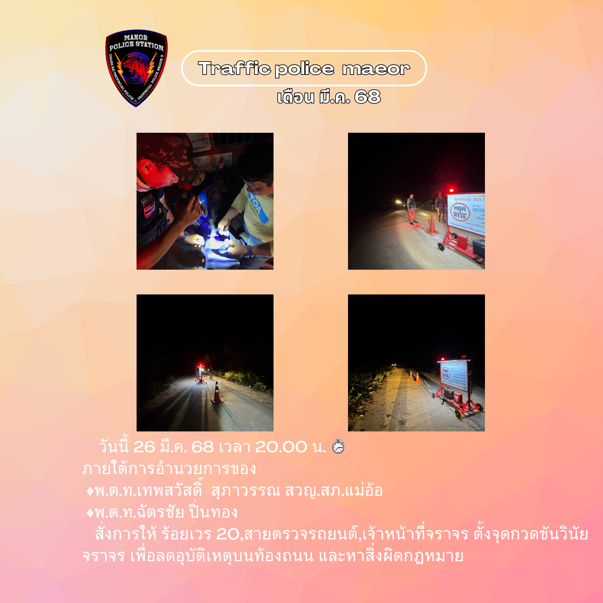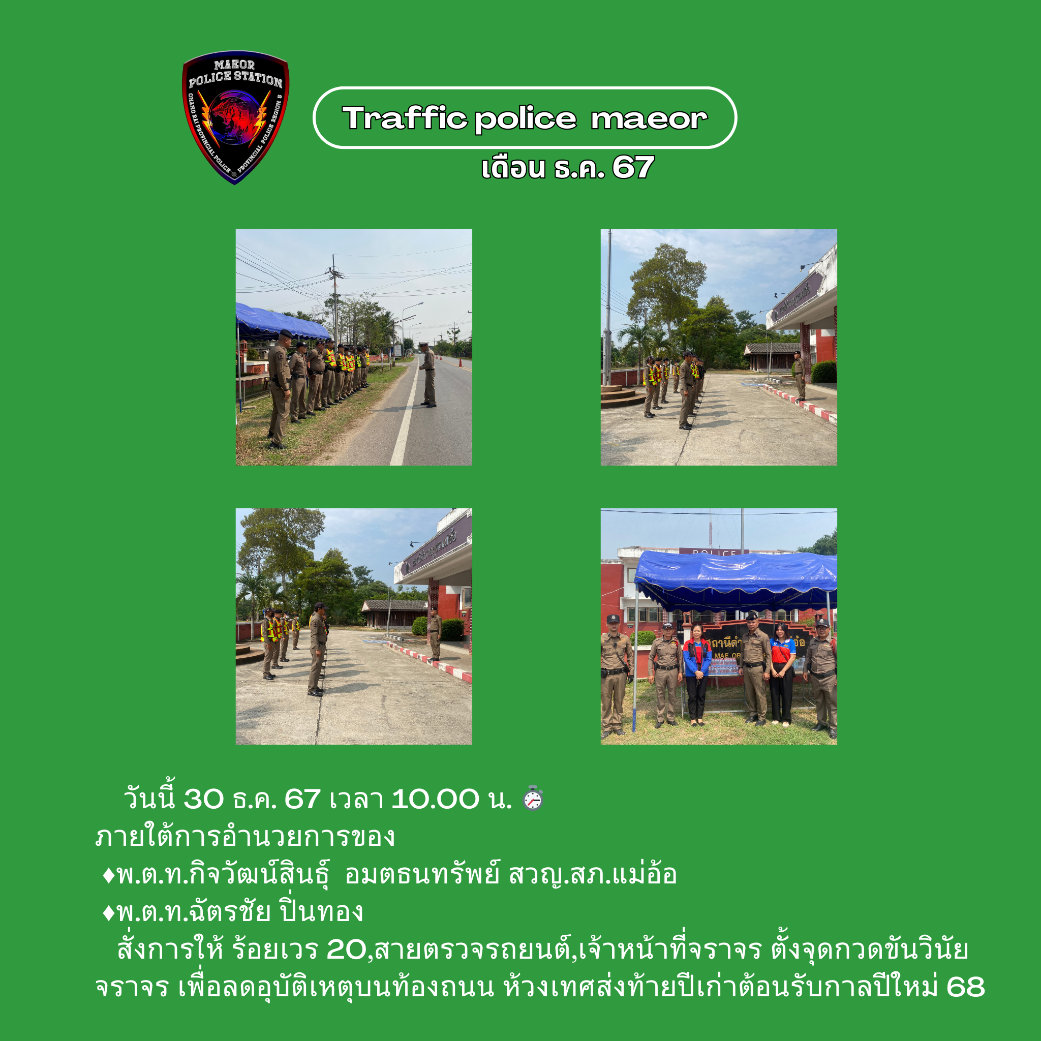 📣วันนี้ (20 มี.ค.69) เวลา 09.00 น. พ.ต.ท.เทพสวัสดิ์ สุภาวรรณ สวญ.สภ.แม่อ้อ พร้อมข้าราชการตำรวจ ร่วมก