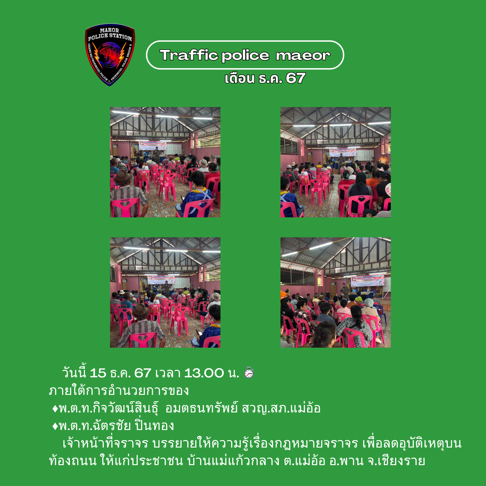 สภ.แม่อ้อ อบรบรุ่นที่2 ตำรวจภูธรจังหวัดเชียงราย โครงการเครือข่ายการมีส่วนร่วมของประชาชน ฯ ประจำปี256