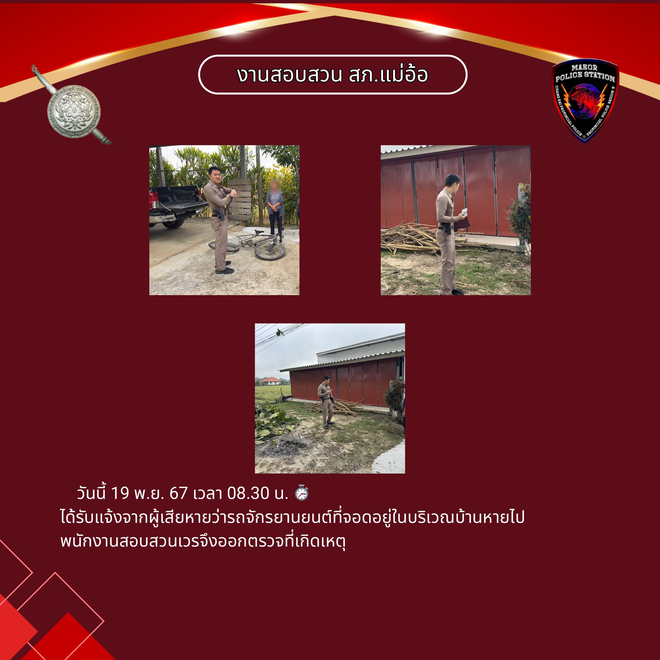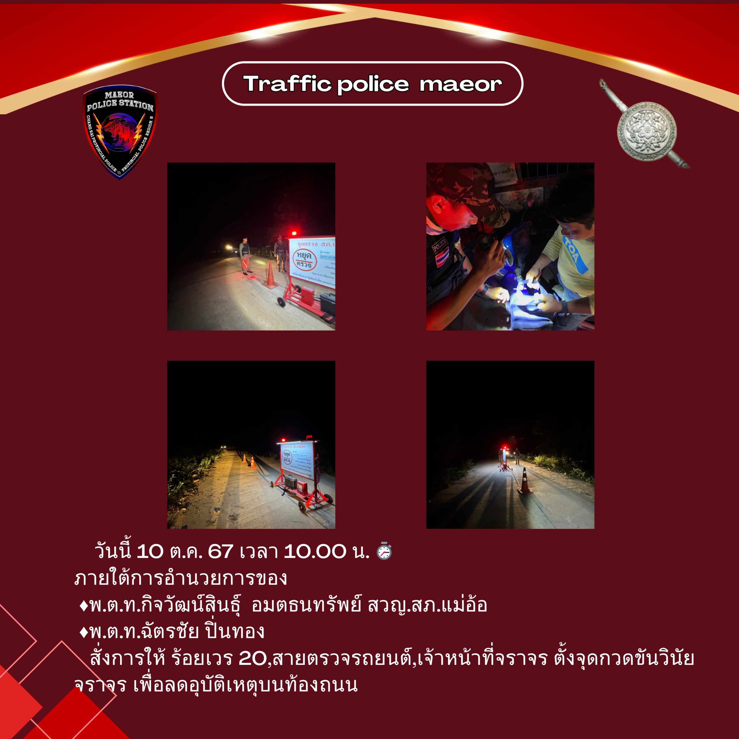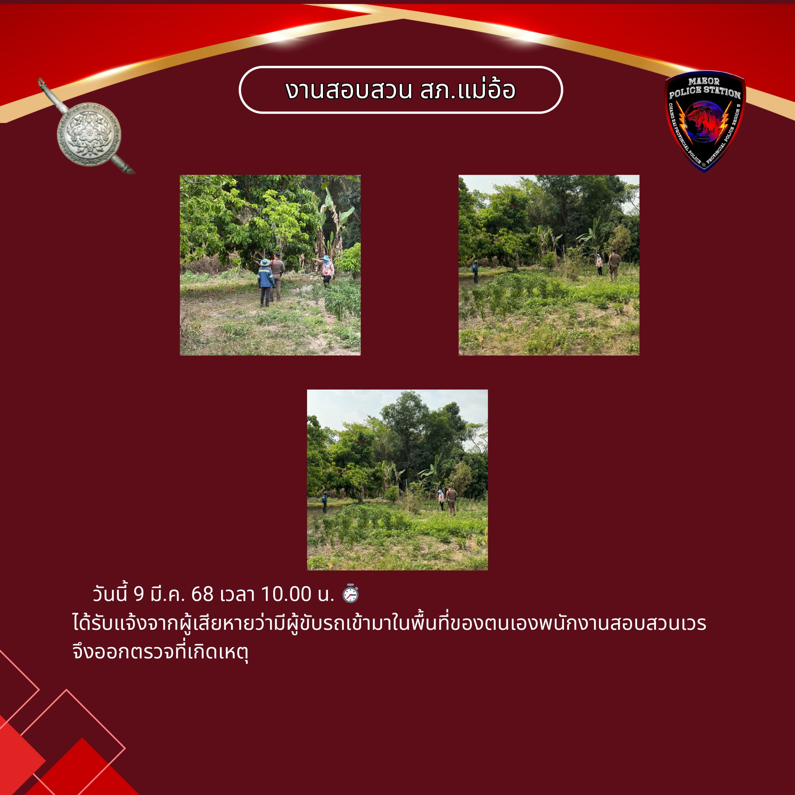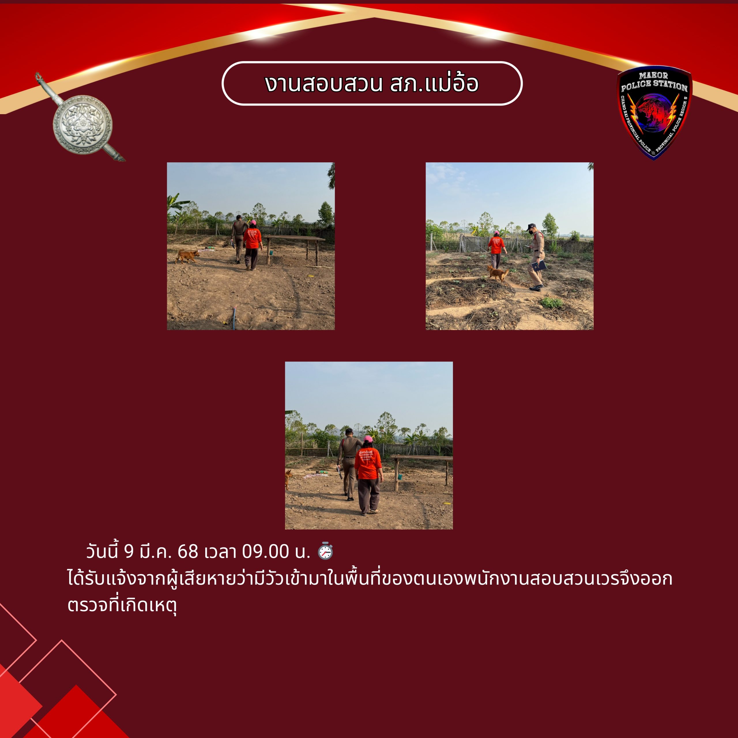 วันที่ 9 เมษายน 2568 เวลา 10.00 น.พันตำรวจโท เทพสวัสดิ์ สุภาวรรณ สารวัตรให